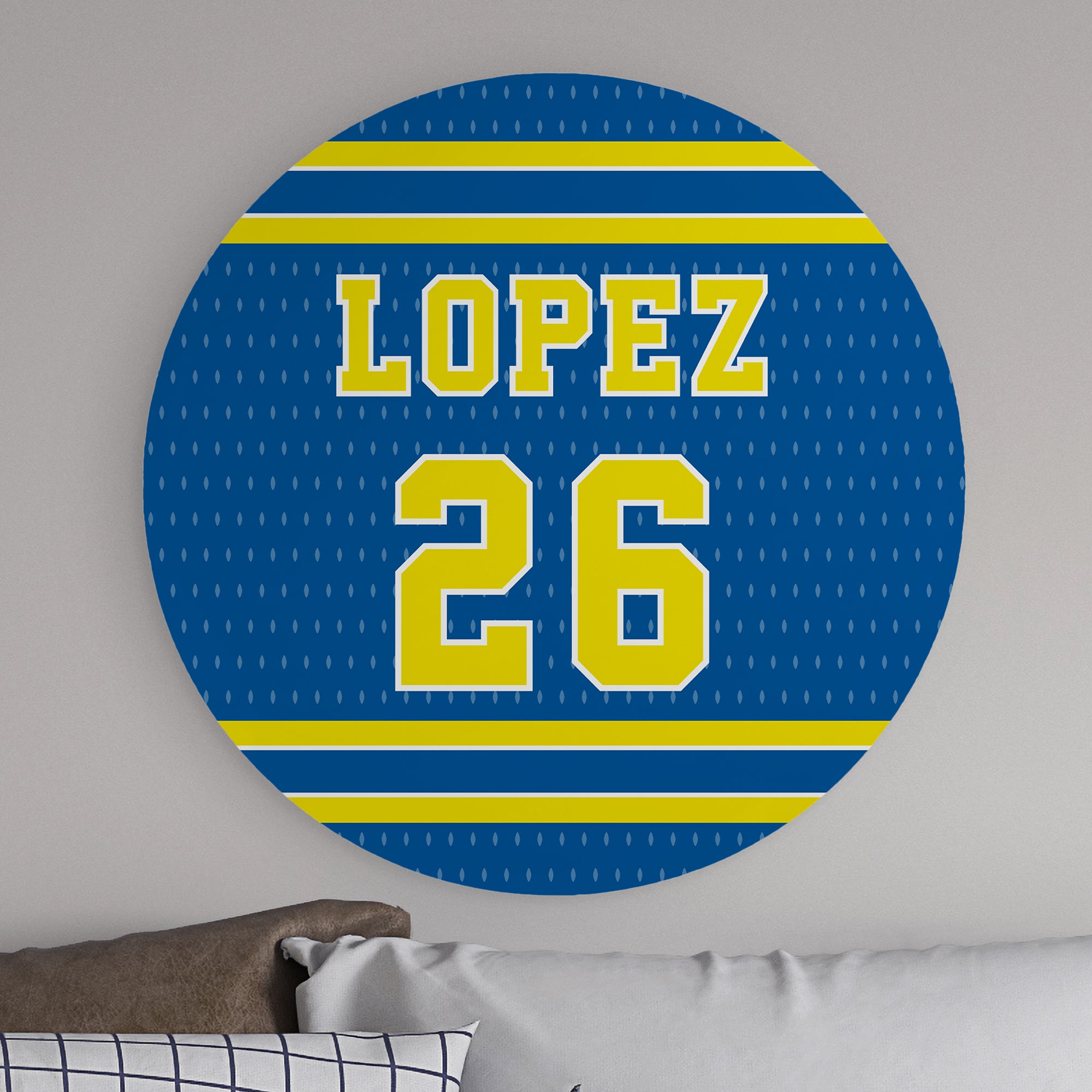 Whether the athlete or a fan, the Sports Jersey Personalized Round Wood Sign makes a sporty addition to any wall. Perfect decor piece for a bedroom, bar area, or rec room.