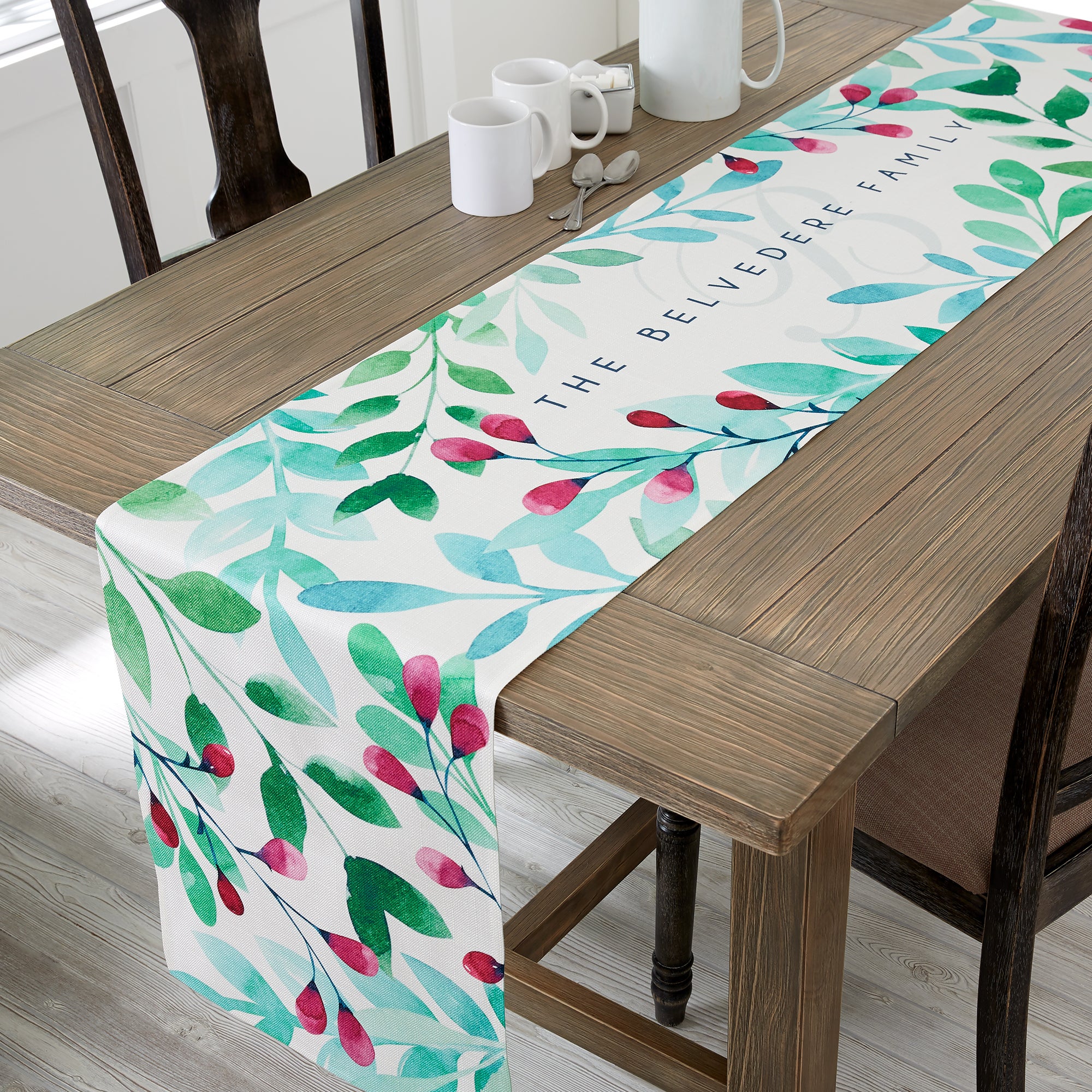 Bring the freshness of springtime into your home with the Spring Floral Personalized Table Runner! Our exclusive design features greenery and flower buds in a soft, watercolor style and is the perfect gift for a housewarming, or any occasion!