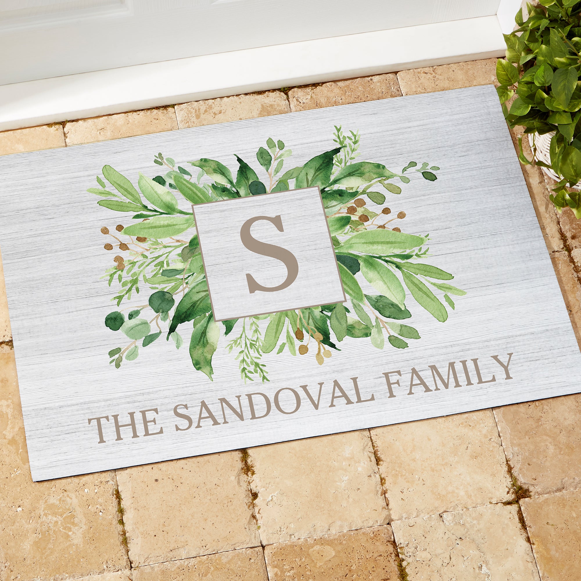 Spring Greenery Personalized Doormats