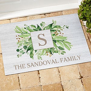 Product Information 25543 - Spring Greenery Personalized Doormat- 18x27