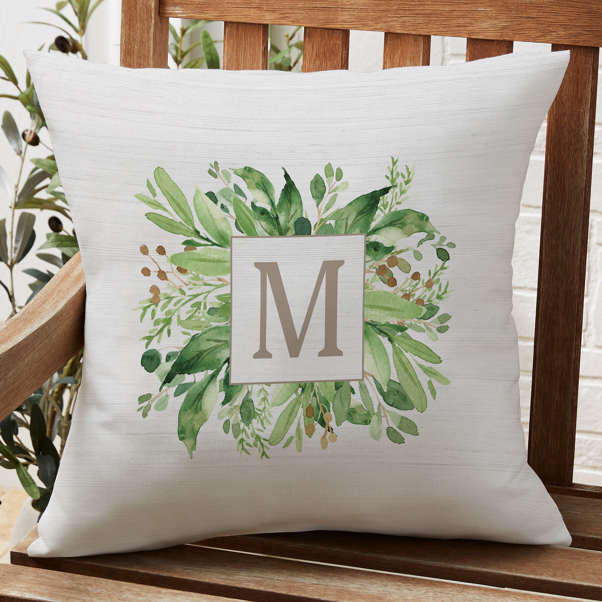 Spring Greenery Personalized Outdoor Throw Pillow