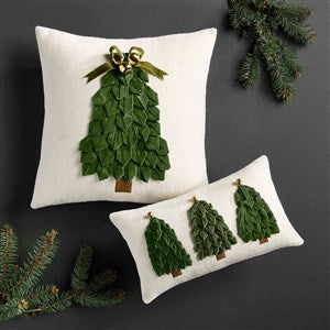 - Rectangular pillow with ribbon tree detail appliqued on front