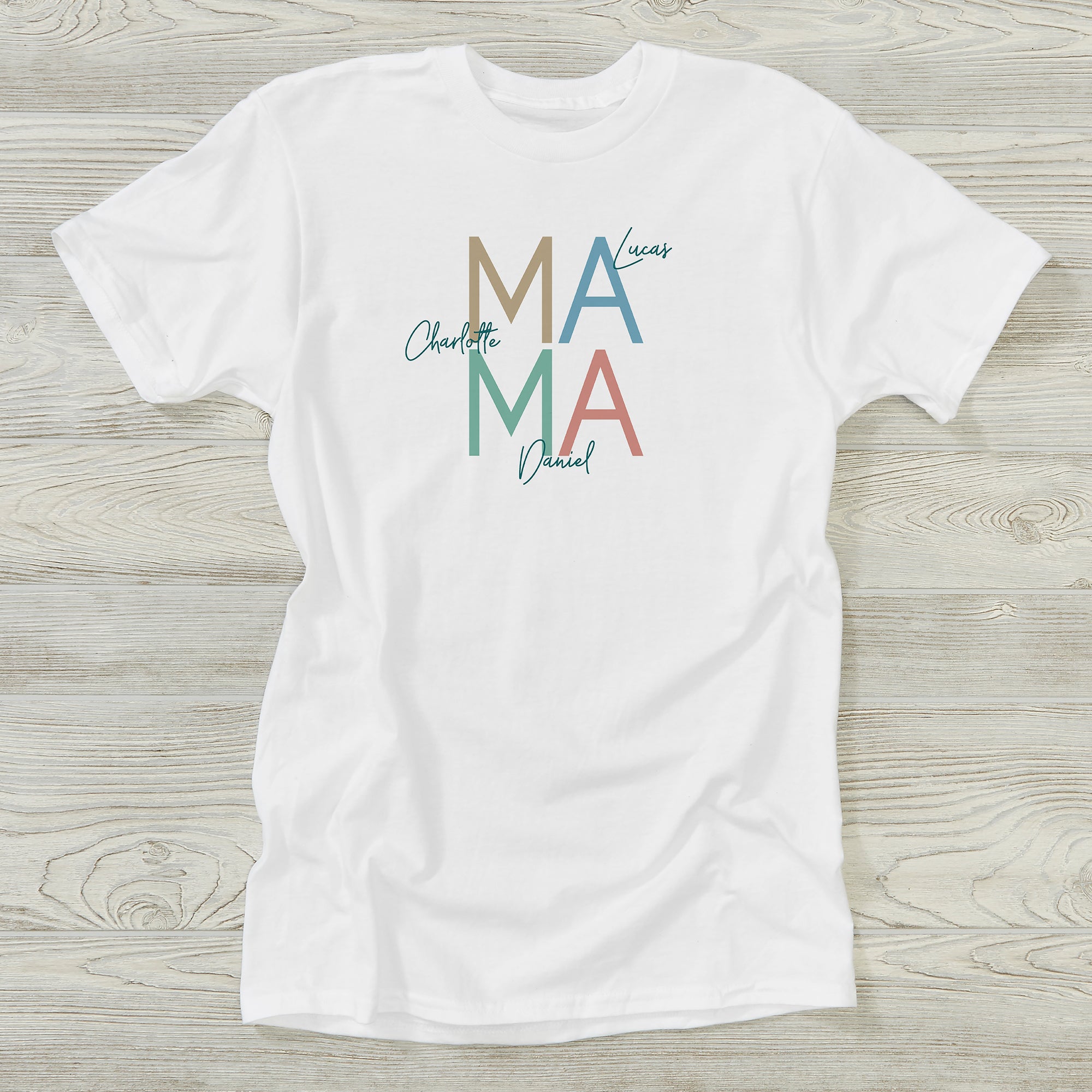 Her heart will be full of love with our Stacked Mama Personalized Ladies Shirt designed exclusively for that special lady. The perfect gift for Mom.