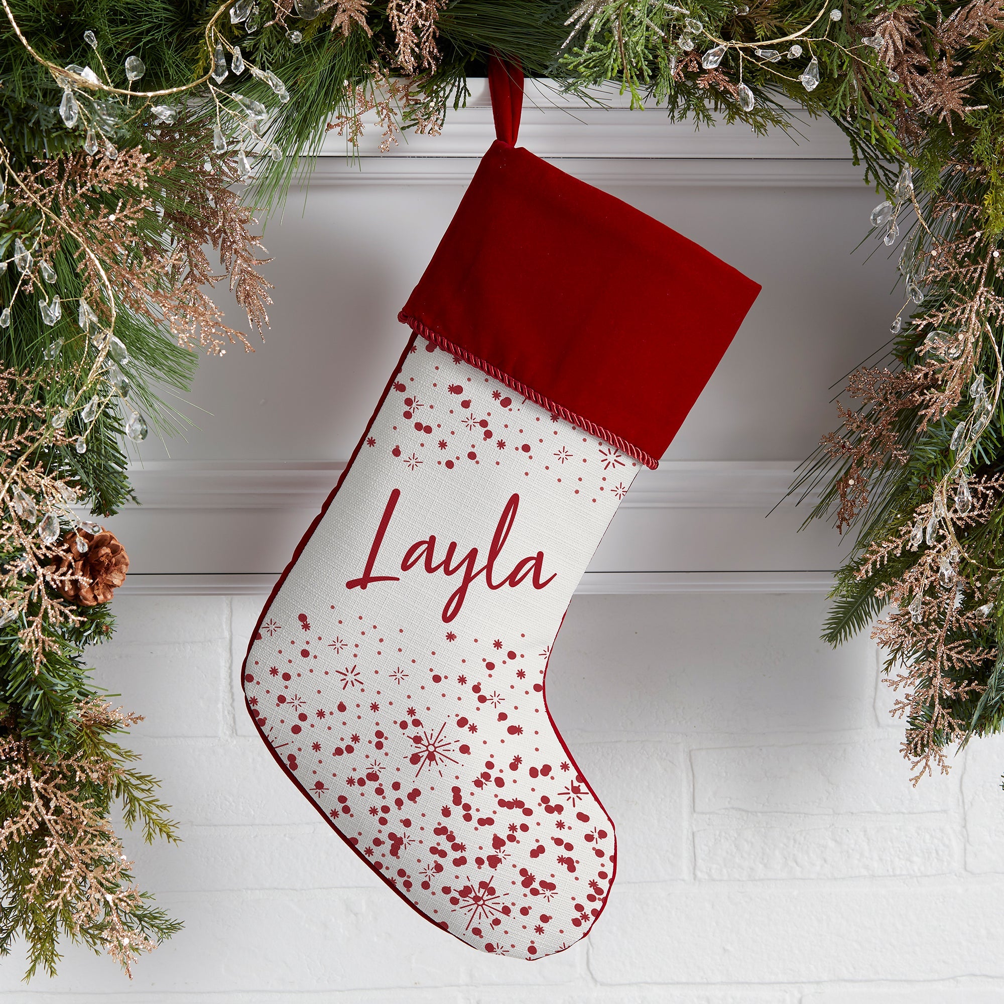 Add a joyful and festive addition to your holiday home this year and every year with our Starburst Name Personalized Christmas Stockings.