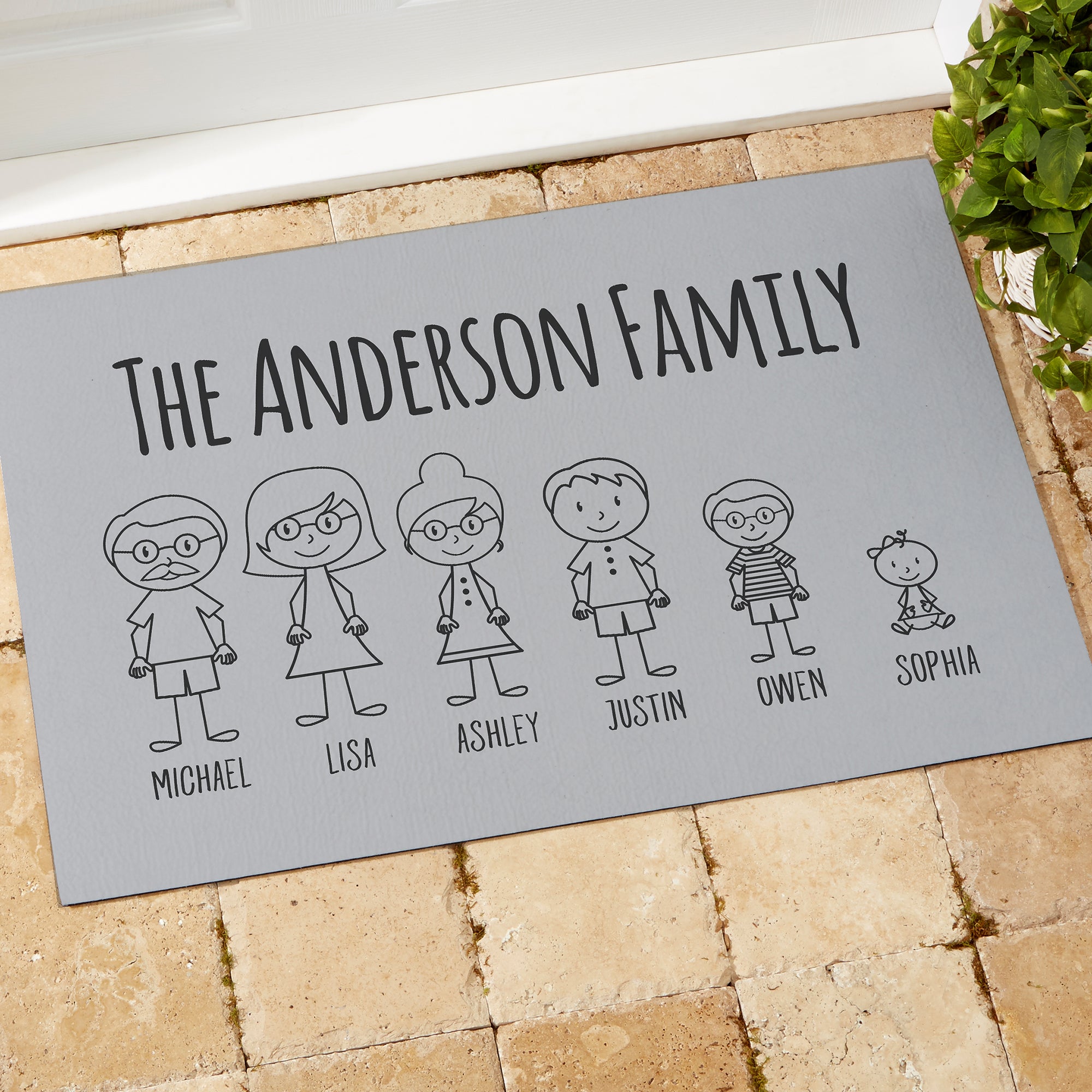 The Stick Figure Family Personalized Character Doormat is the perfect accent for your home. Create a customized character for each member of your family.