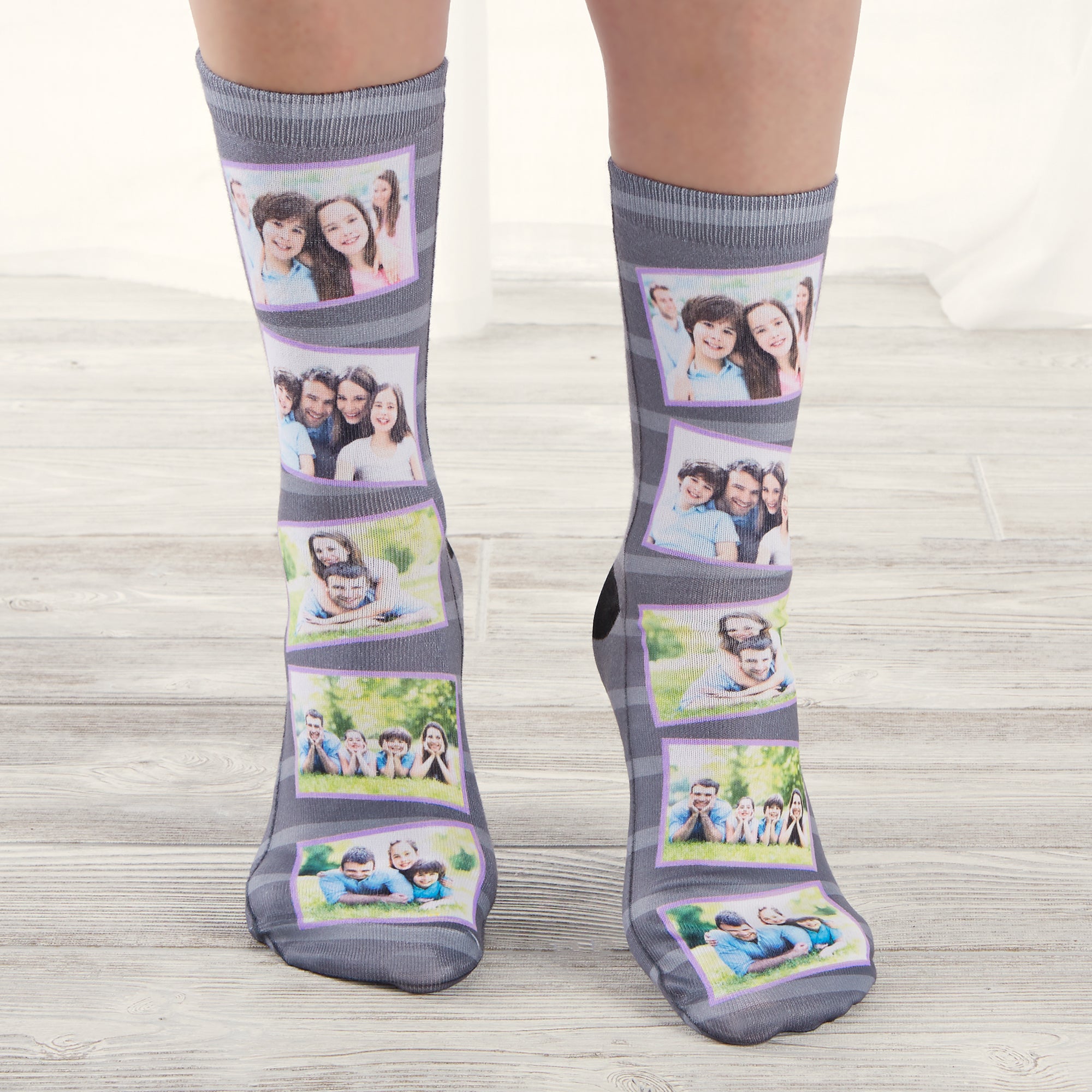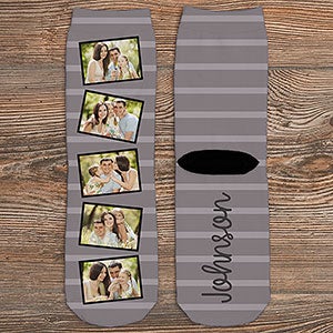 Slip your feet into a totally unique pair of socks with our Striped Photo Collage Personalized Adult Socks. A great pair of socks can add an eye-catching detail to any outfit.