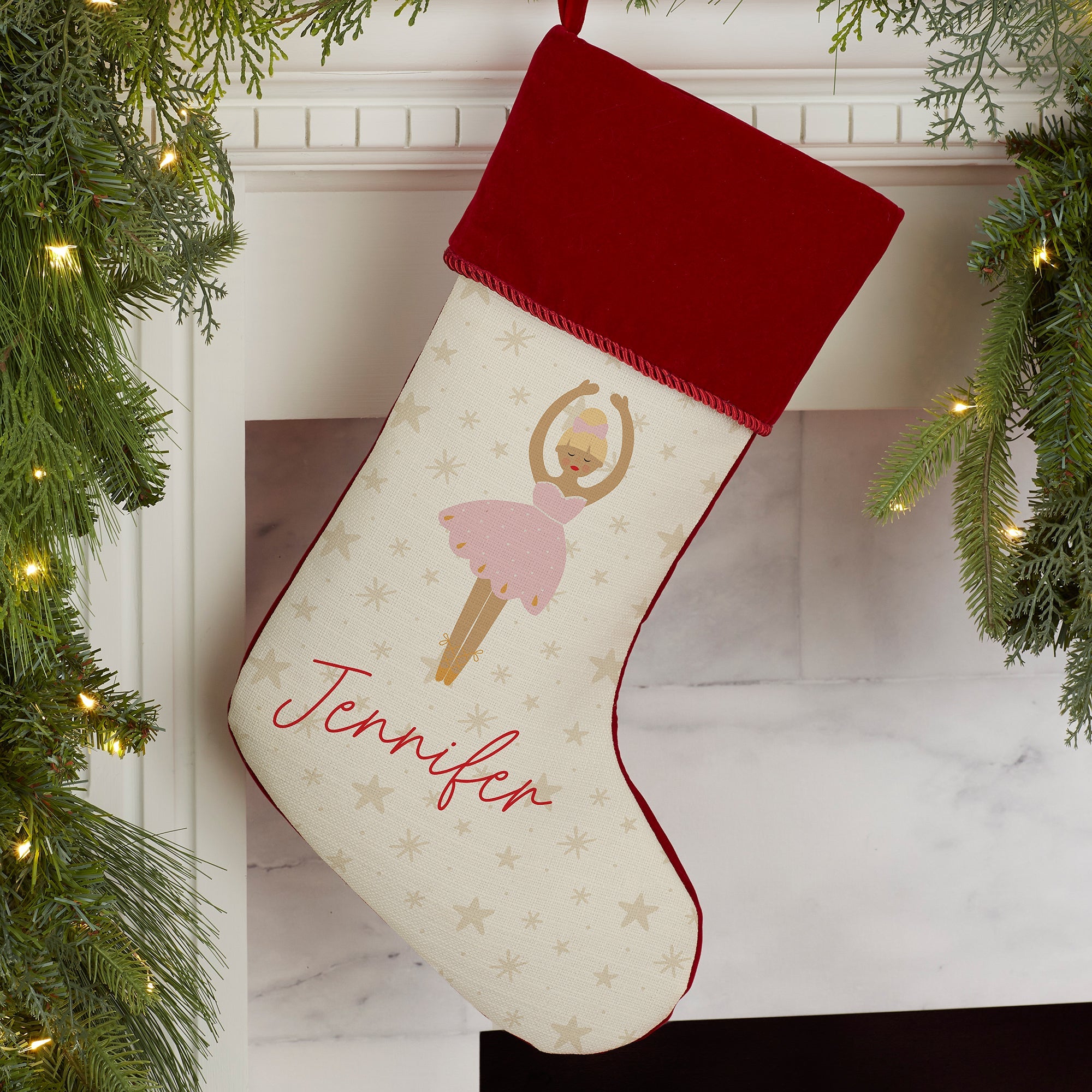 Create a whimsical and warm addition to your holiday home this year and every year with our Sugarplum & Nutcracker Personalized Christmas Stocking.