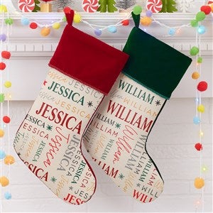 Make a whimsical and warm addition to your holiday home this year and every year with our Sugarplum Repeating Name Personalized Christmas Stocking.