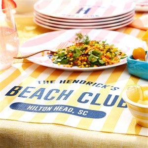 Elevate your dining experience with the Sunkissed Stripes Personalized Table Runner, infused with a coastal charm, its sun-kissed colors bring a touch of elegance and personalization to any table setting. Perfect for summer gatherings, this table runner effortlessly combines style and functionality, making every meal feel like a seaside escape.