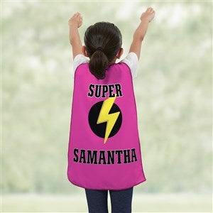 Encourage imaginative play as they transform into their very own super hero with the Super Hero Personalized Kid's Cape. Each cape is printed with our exclusive Super Hero style emblem.