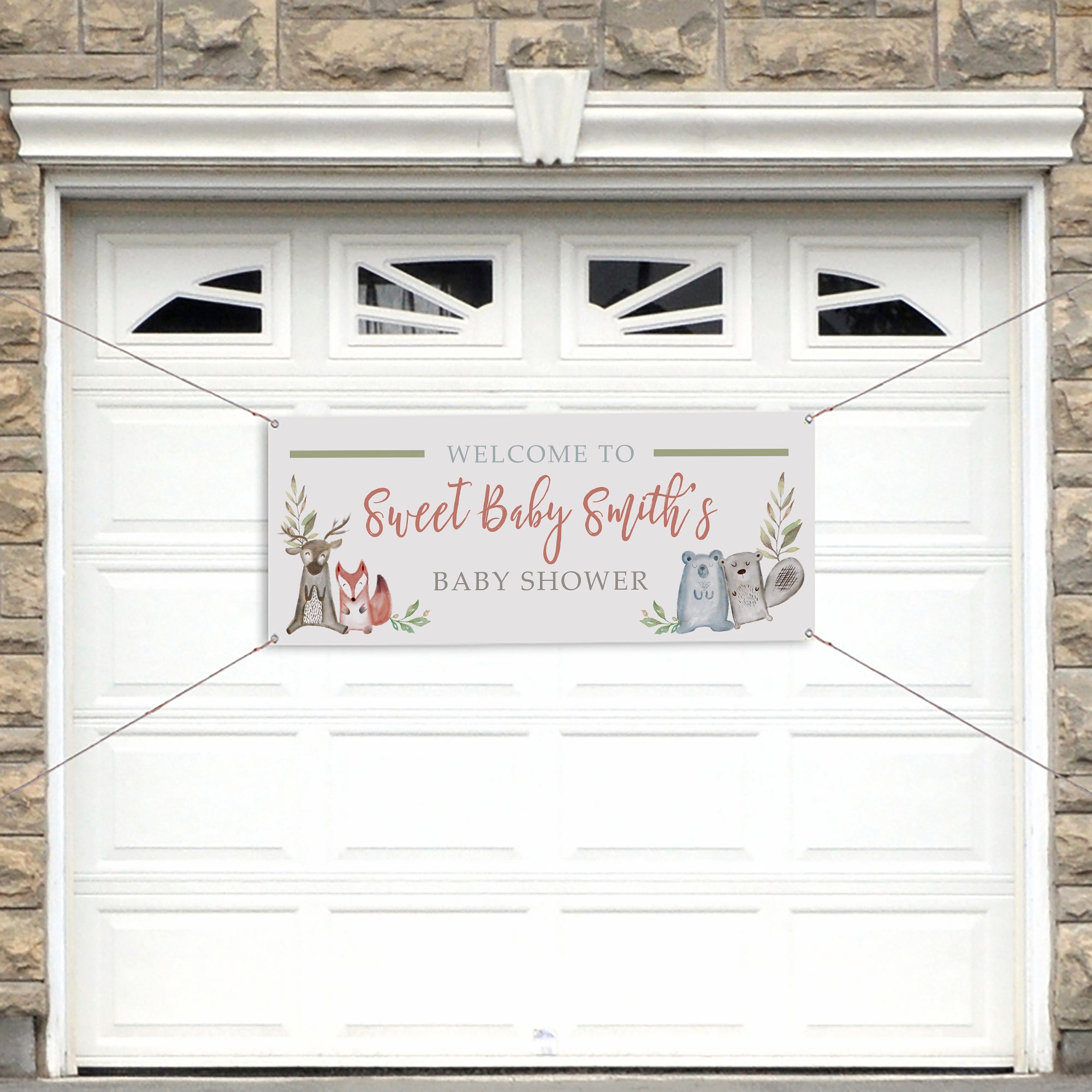 Celebrate the mom-to-be and decorate for her baby shower using our Sweet Baby Woodland Personalized Baby Shower Banner. Featuring adorable wildlife animals, this banner is sure to direct guests to the right place to celebrate.