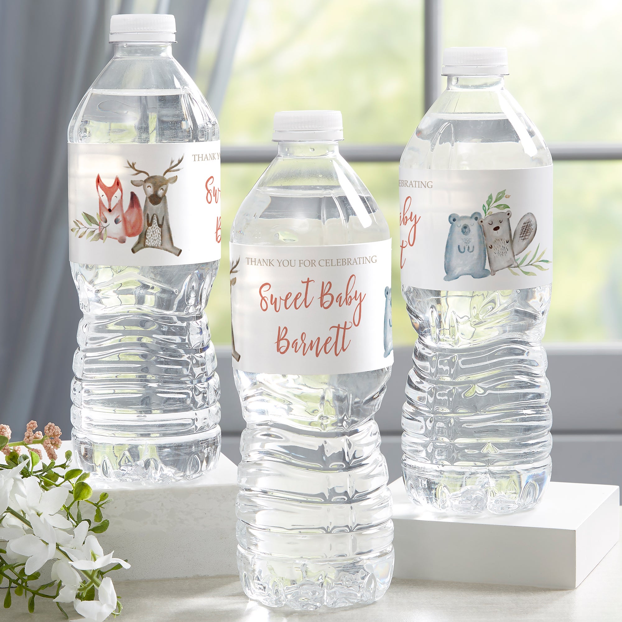 Add a sweet touch to your woodland-themed baby shower with our Sweet Baby Woodland Personalized Water Bottle Labels.