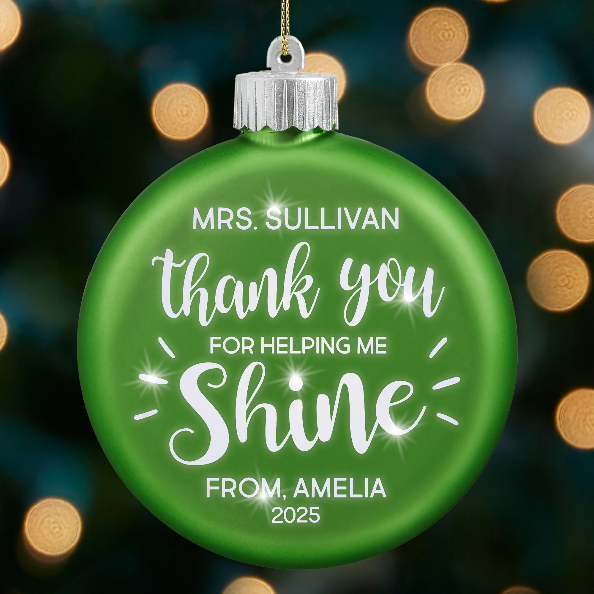 Thank You For Helping Me Shine Teacher Personalized LED Glass Ornament