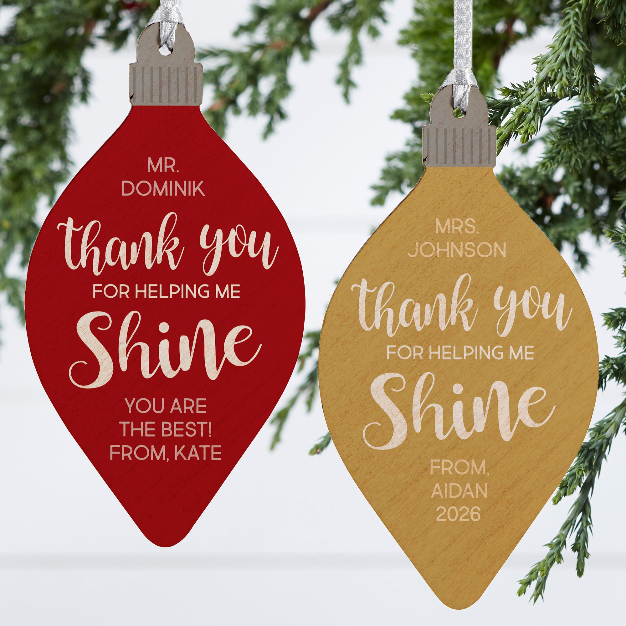 Thank You For Helping Me Shine Wood Bulb Teacher Ornament