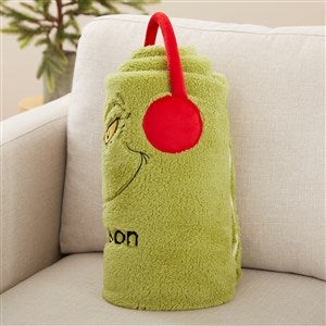 Celebrate the season cuddled up in The Grinch Personalized Fleece Blanket. The festive design will add a pop of holiday spirit to any sofa, chair or bed. When not in use roll the blanket up creating a depiction of The Grinch and making a great holiday décor piece.