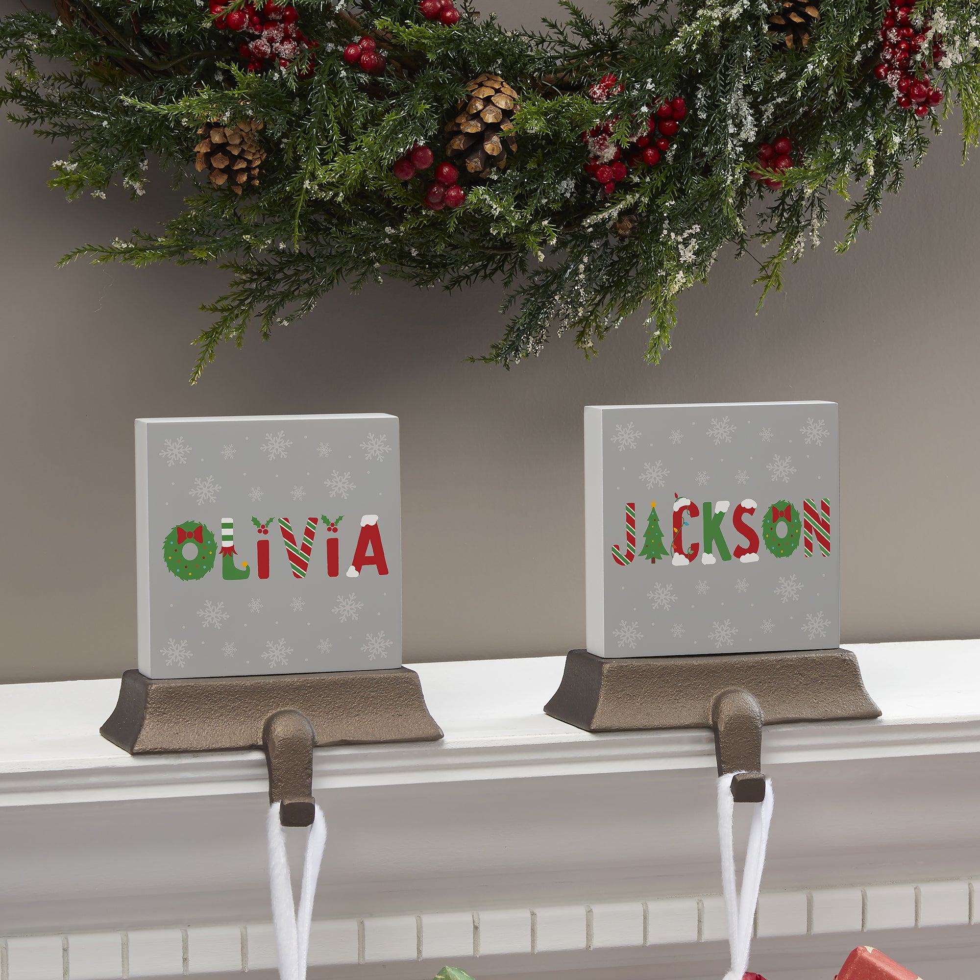 Festively decorate your fireplace mantel year after year with our The Joys Of Christmas Personalized Stocking Holder. Each stocking holder is heavy enough to support the most abundantly-filled stockings without nails or screws that could damage your mantel.