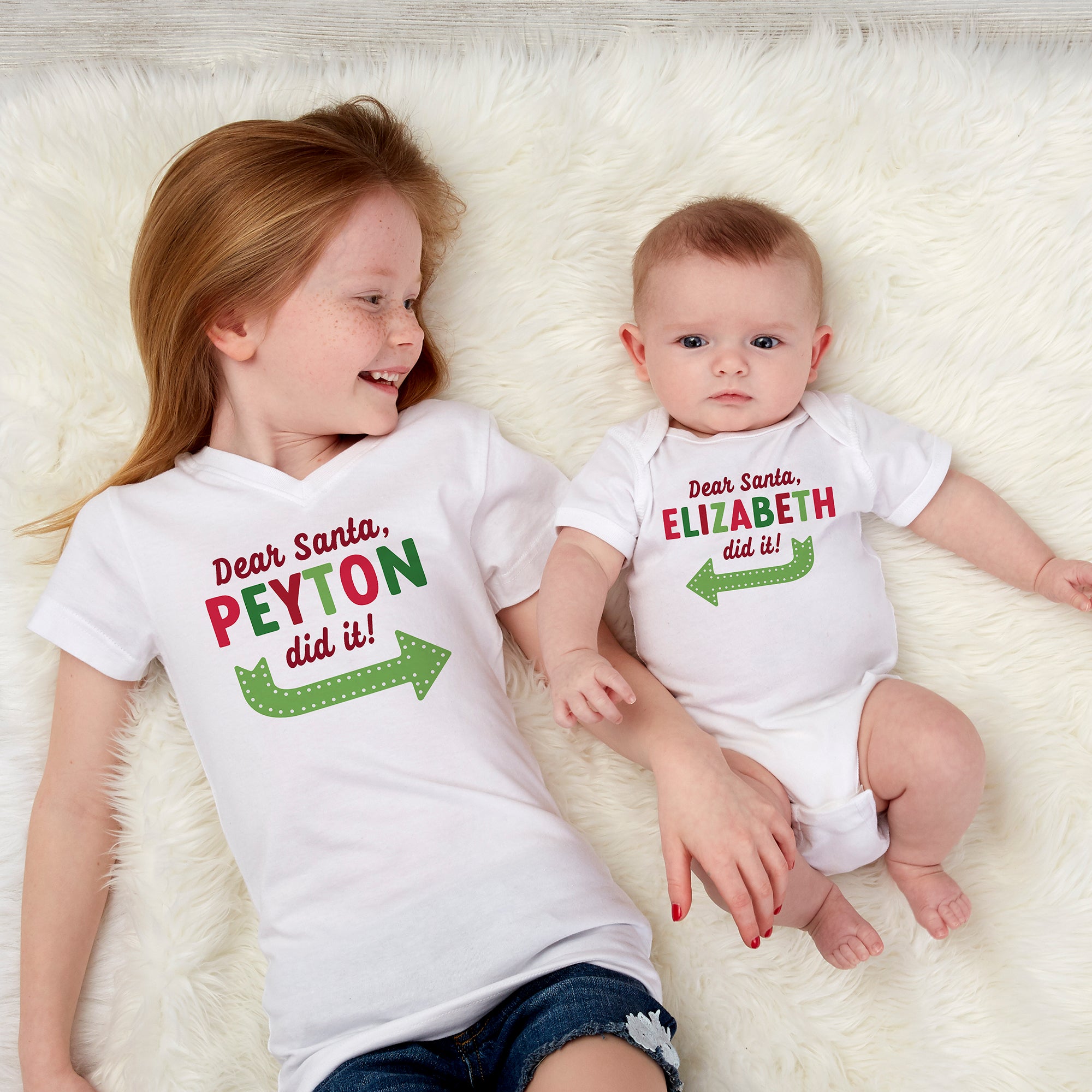They will take center stage and attract adorable glances this holiday season when they are decked out in our They Did It Personalized Christmas Baby Clothing.