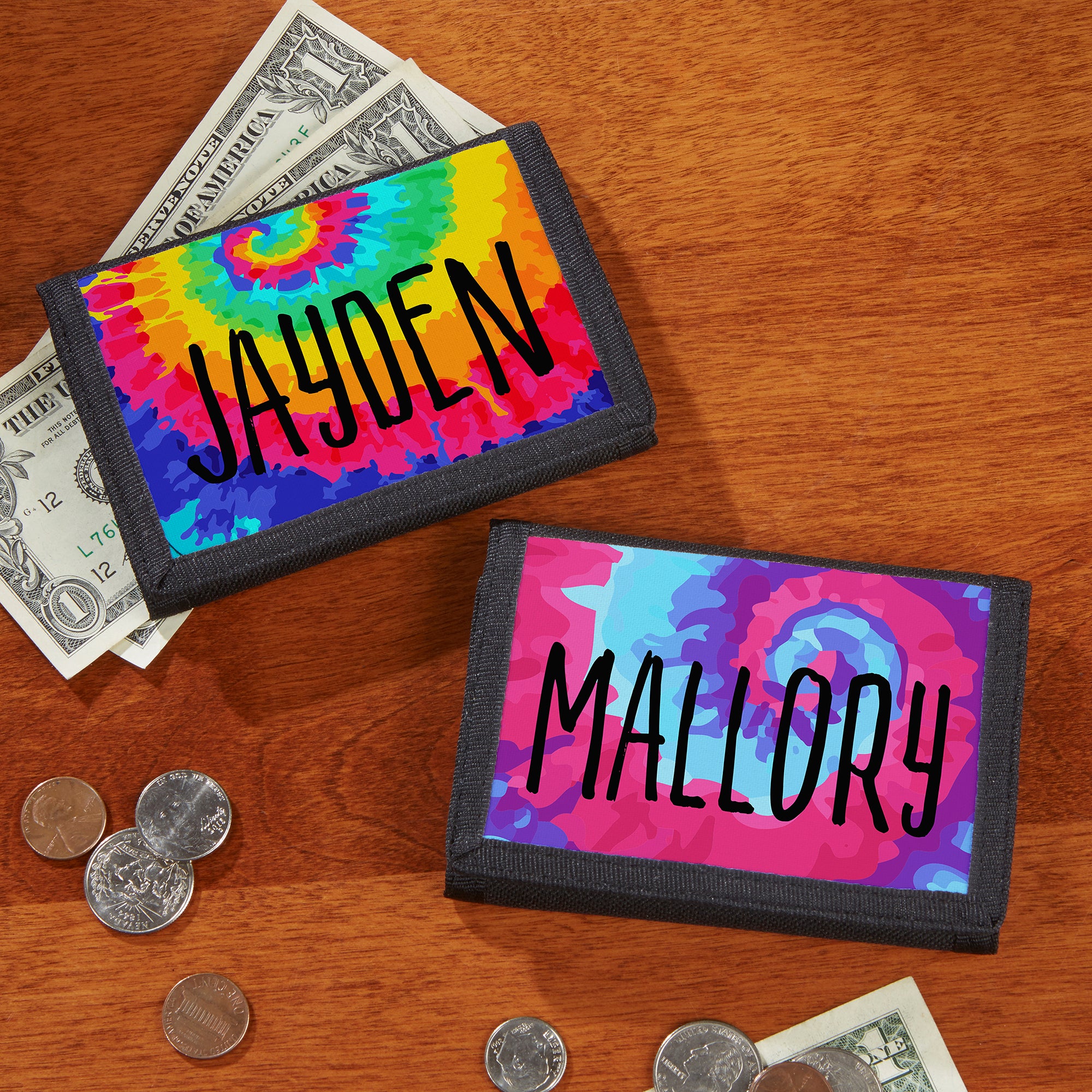 Now they can carry their currency in personalized style with our Tie-Dye Fun Personalized Kids' Wallet.