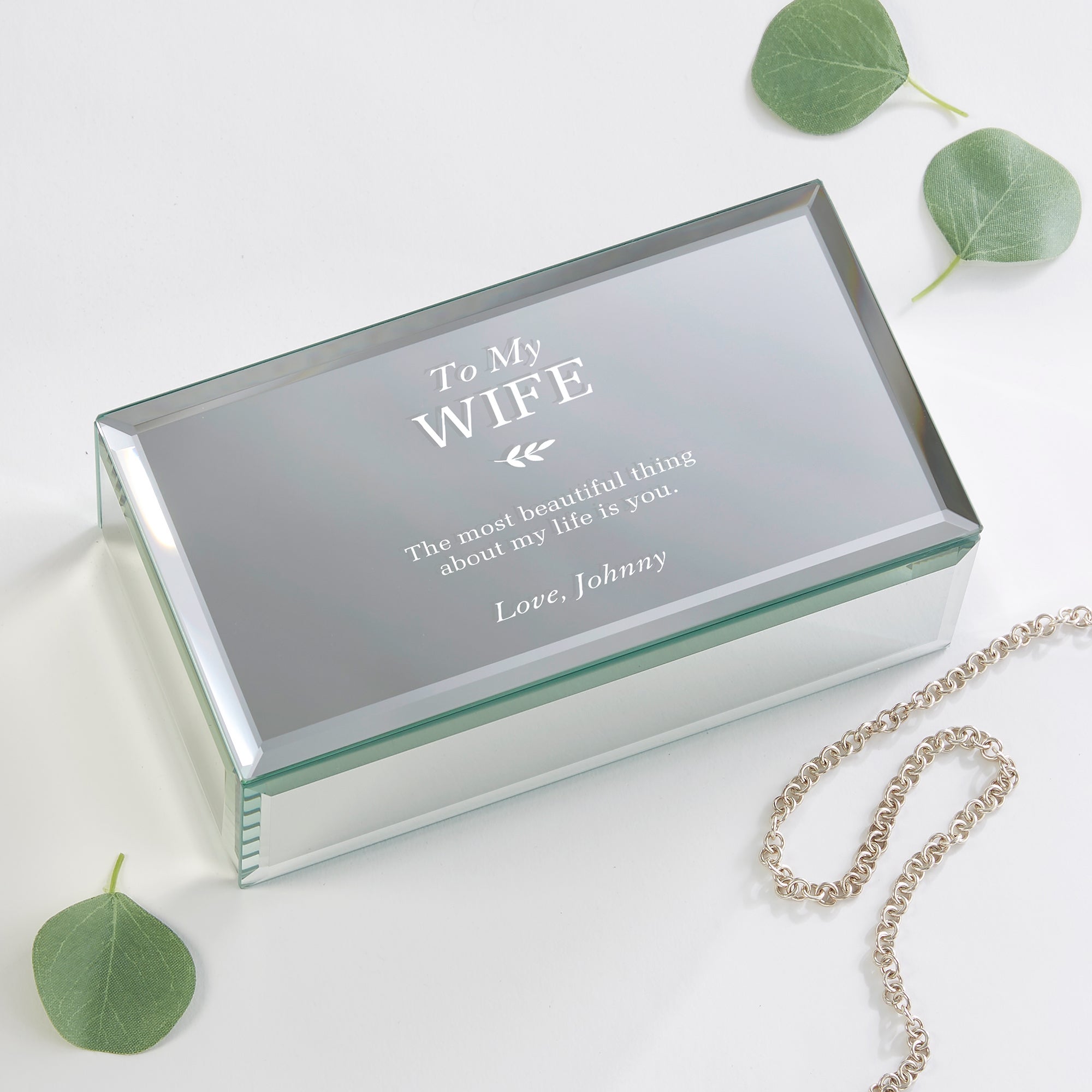 Give her a breathless keepsake she will treasure through the years by personalizing our stunning To My Wife Engraved Mirrored Jewelry Box.