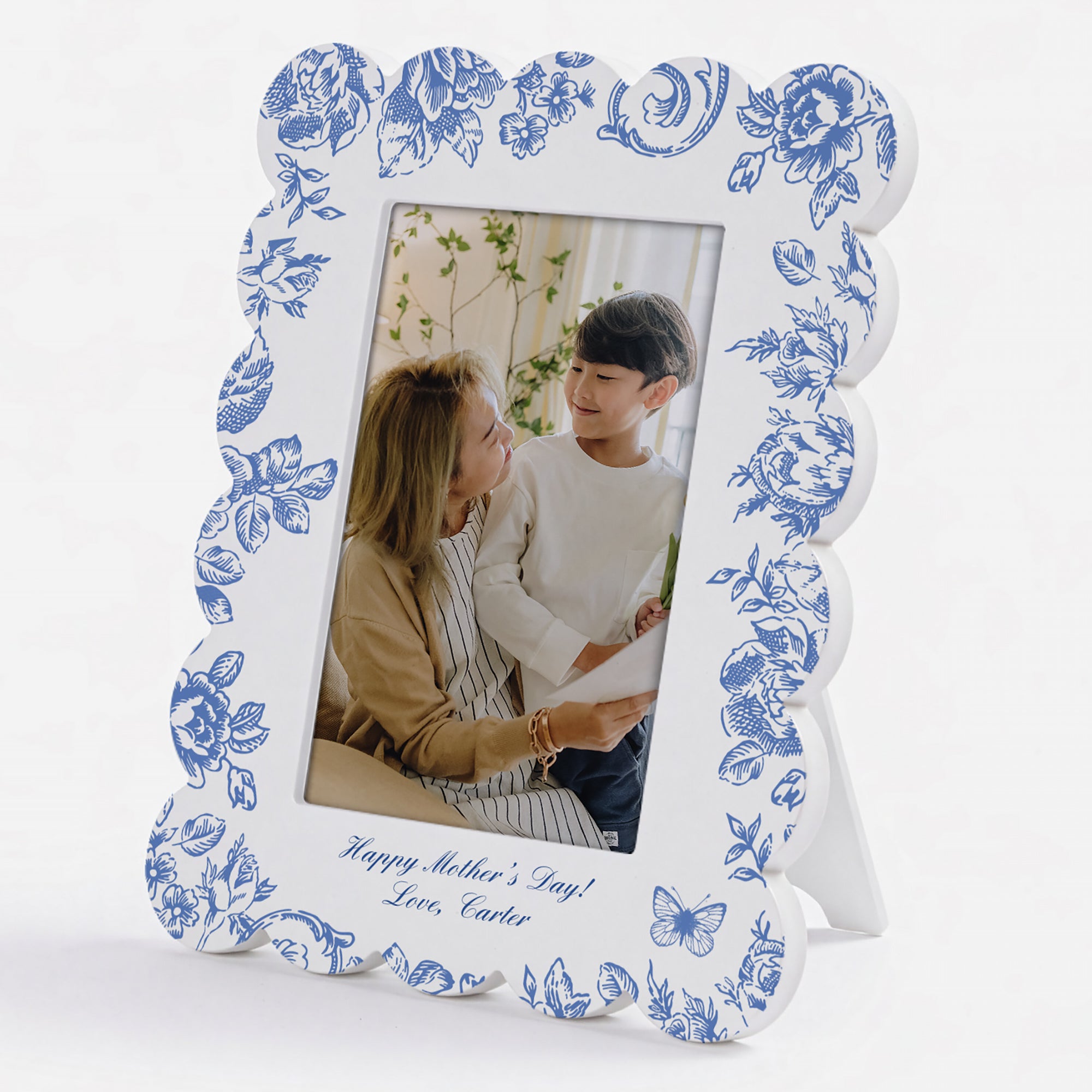 Showcase your most meaningful moments with the timeless charm of the Toile Edit Personalized Scallop Edge Picture Frames. Featuring a classic blue-and-white toile pattern, this elegant frame blends traditional style with a fresh, decorative touch. The softly scalloped edges add dimension and sophistication, making it a beautiful accent for any room.
