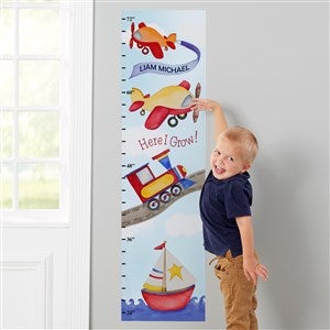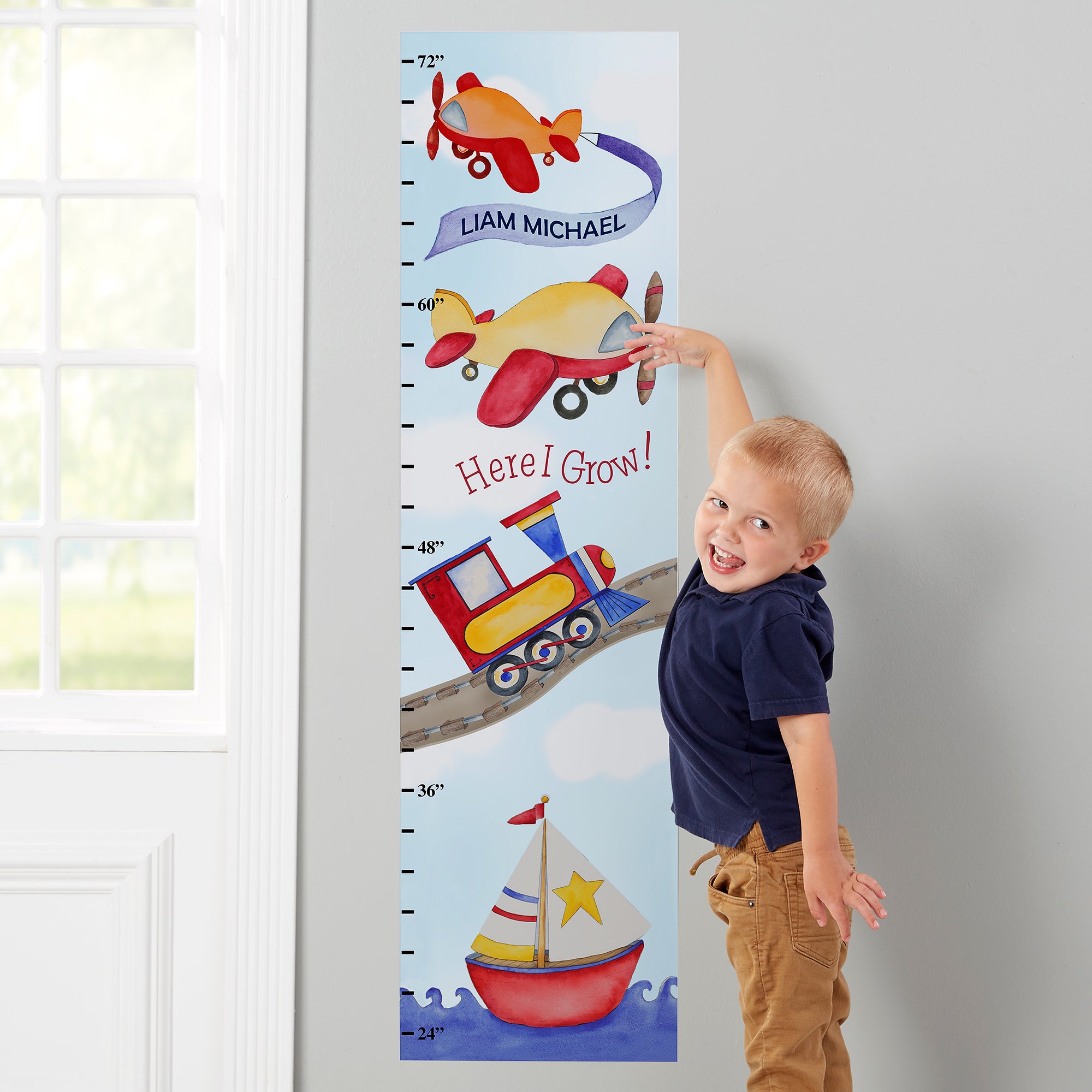 They grow up so fast, keep track with the Transportation Personalized Wall Decal Growth Chart. This removable wall decal can be hung anywhere in the house and be marked with a permanent marker (not included).