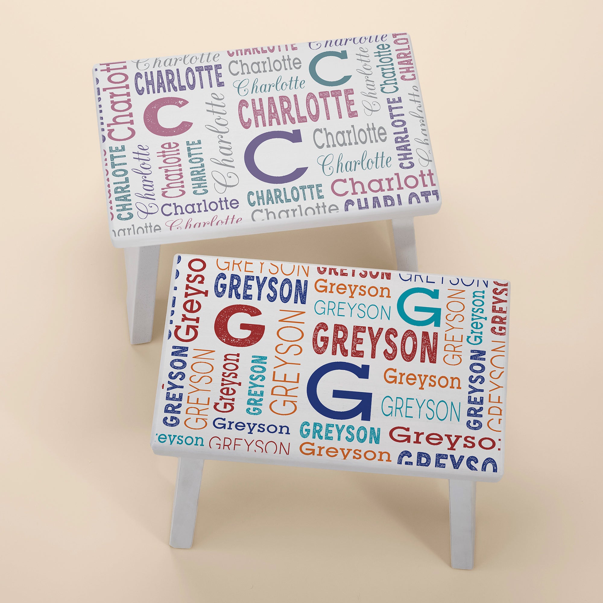 Trendy Repeating Name Personalized Kids Step Stool