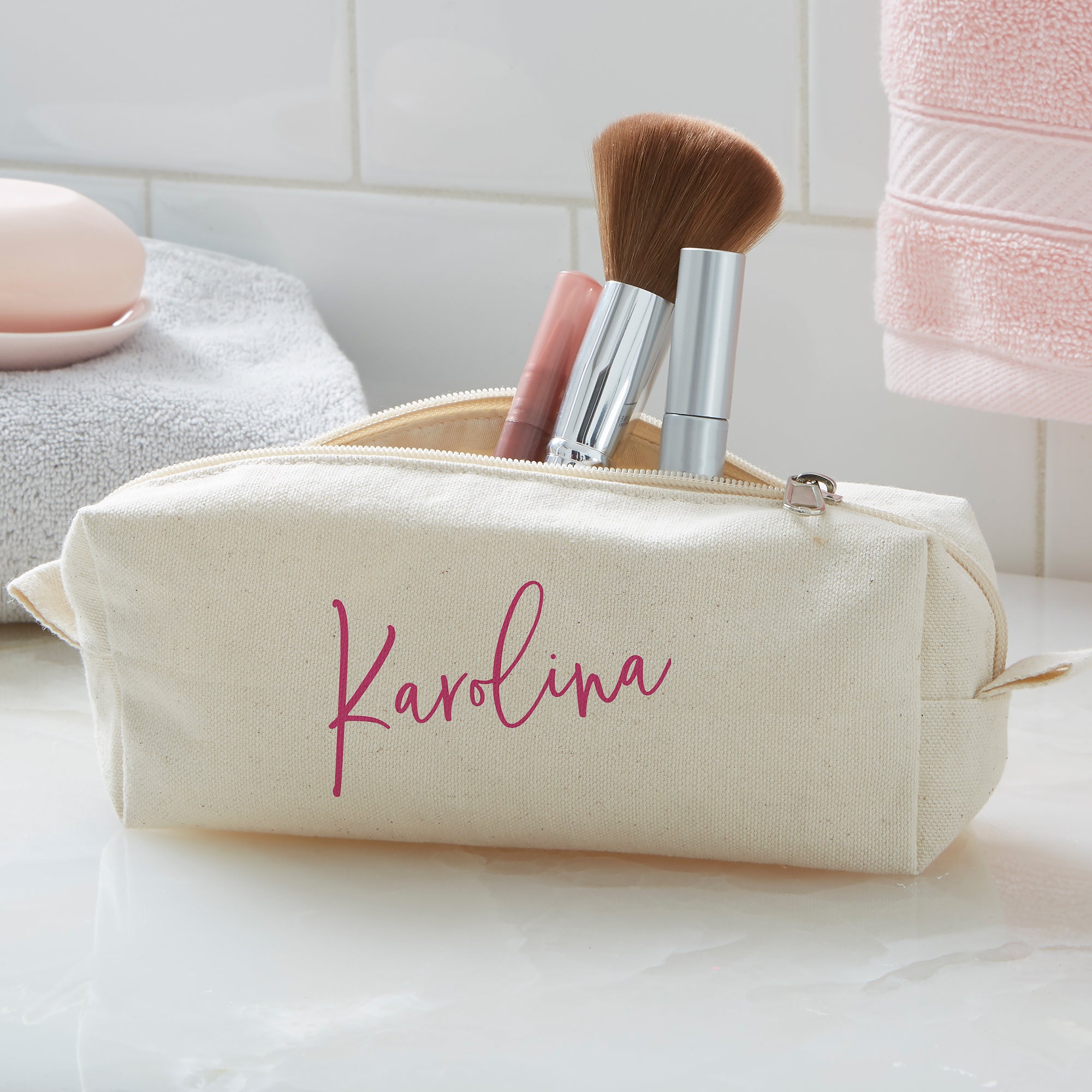 Keep all cosmetics and cosmetic brushes organized with our Trendy Script Personalized Canvas Cosmetic Case.