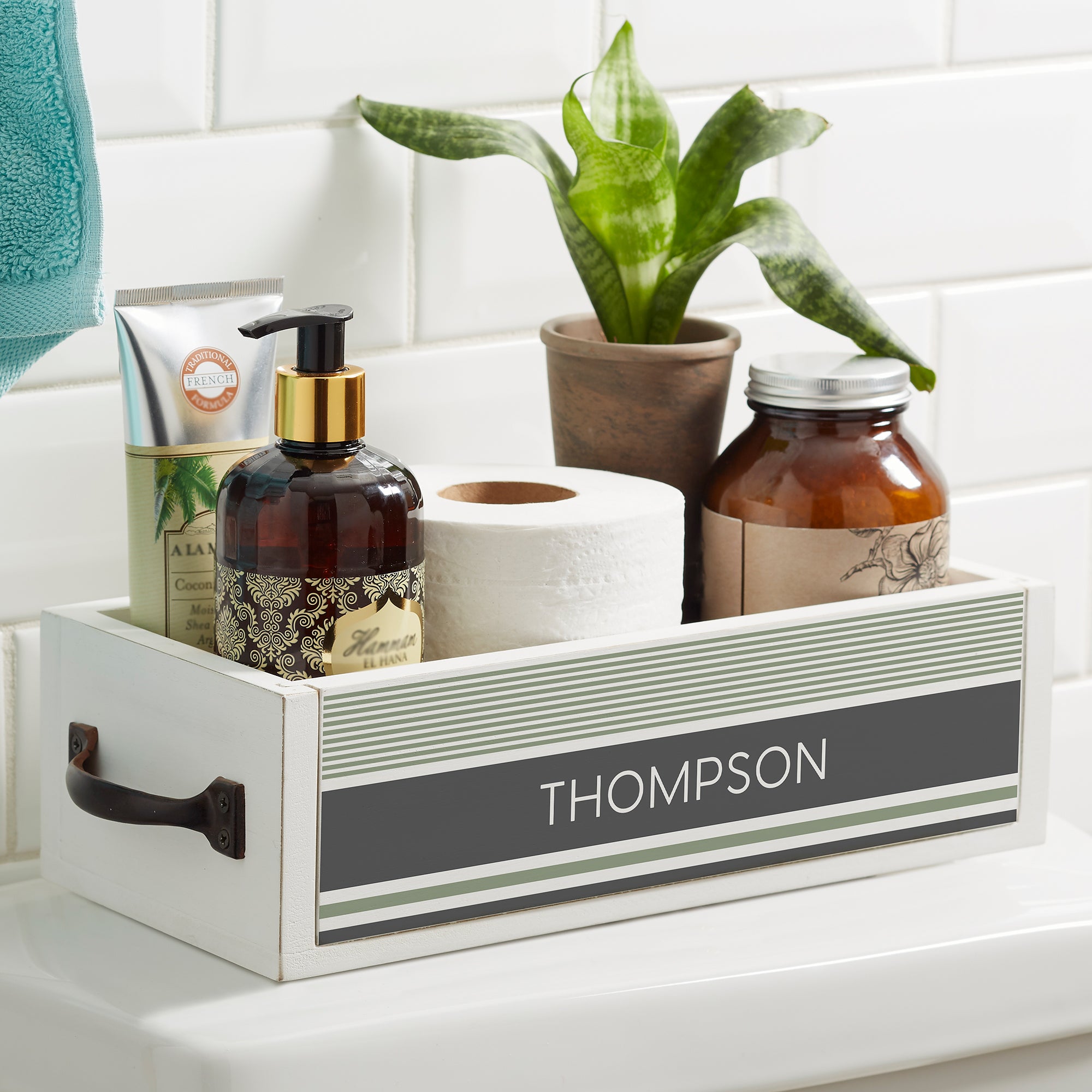 Turkish Stripes Personalized Wood Bathroom Storage Box