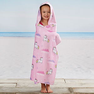 Make a splash at the beach or pool with our Unicorn Adventure Personalized Kids Hooded Beach & Pool Towel. The hooded design keeps your child's head from getting cold while the terry material takes away the moisture left over after getting out of the water, keeping your child snuggled in comfort.