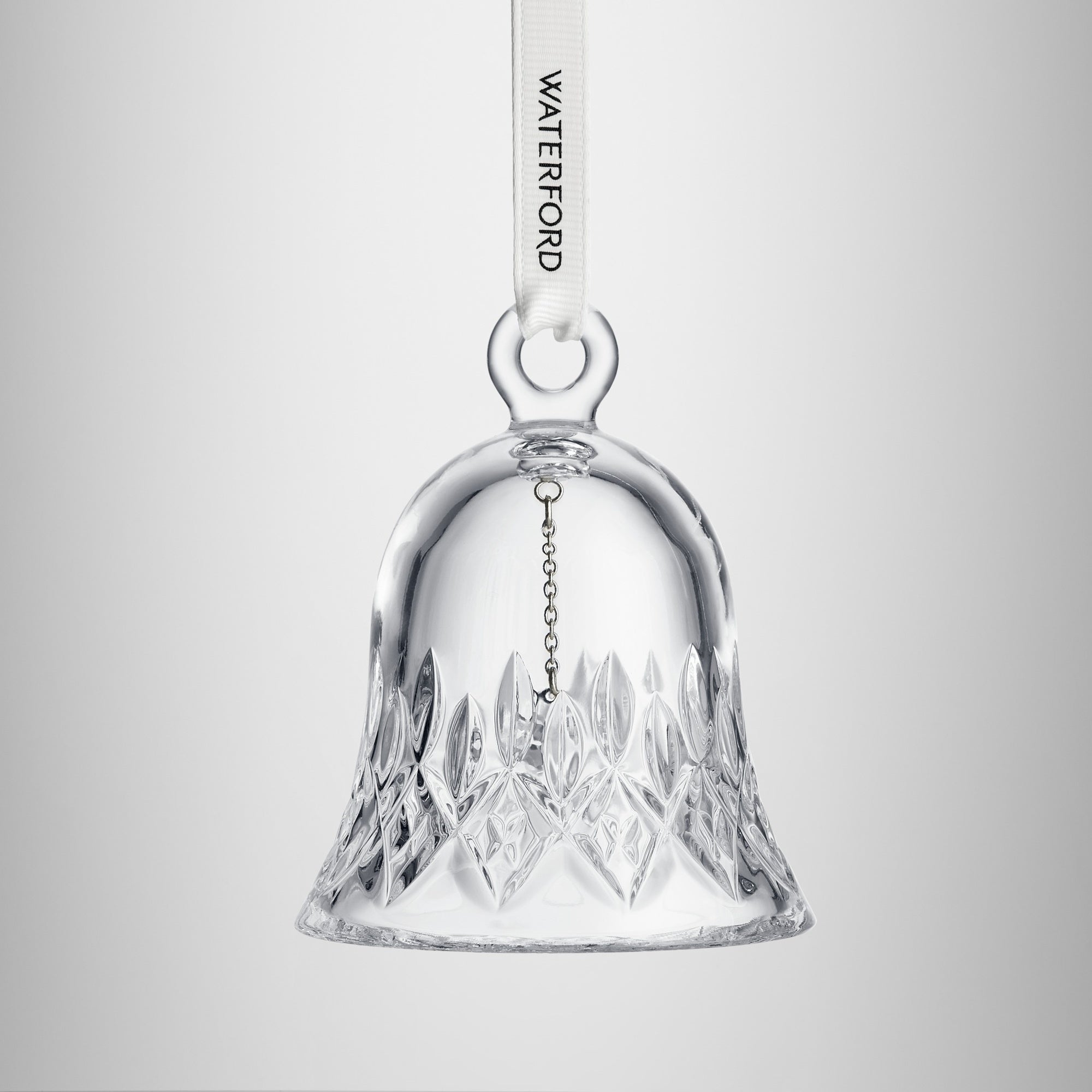- Waterford crystal bell ornament featuring their famous Lismore cut crystal pattern
