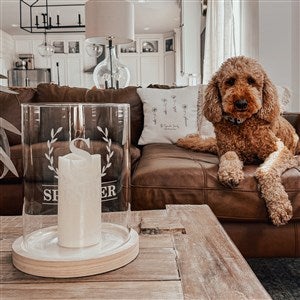 Laurel Wreath Personalized Hurricane with Whitewashed Wood Base