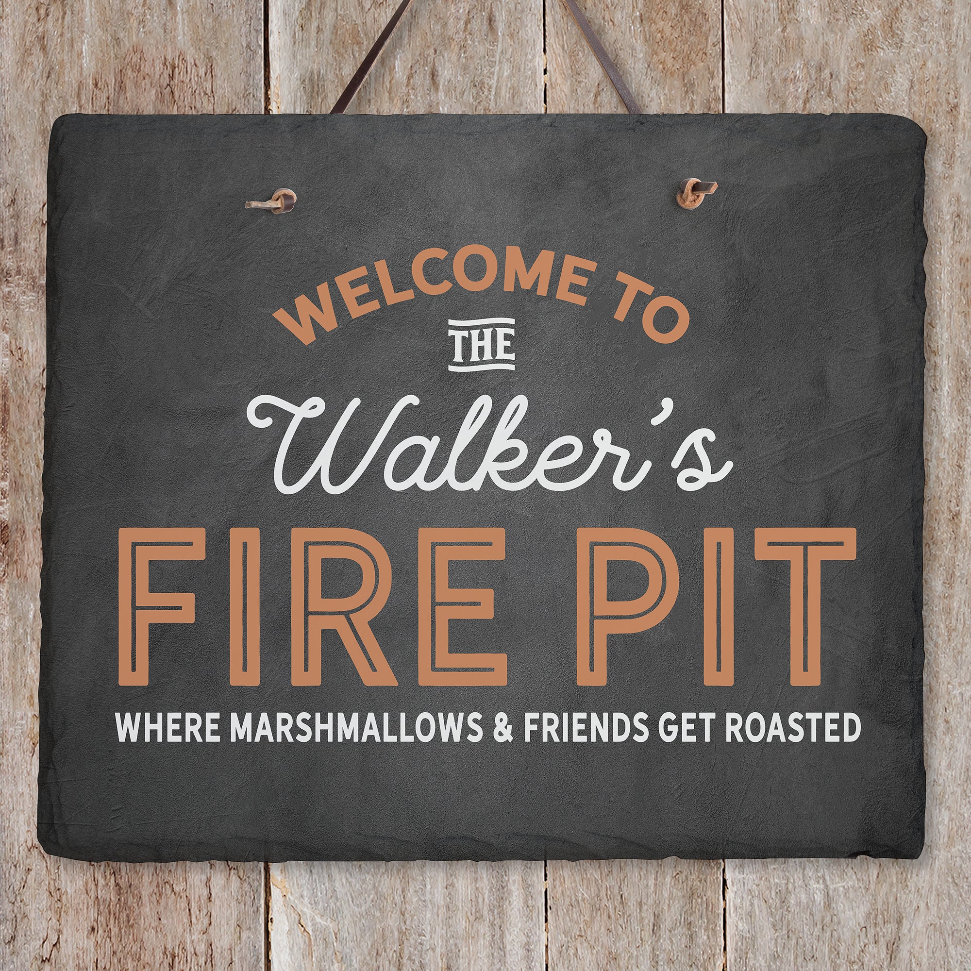 Add a unique, distinctive finish to your outdoor space with the Welcome To...Personalized Outdoor Slate Sign. Welcome guests to your deck, patio, pool, or fire pit area.