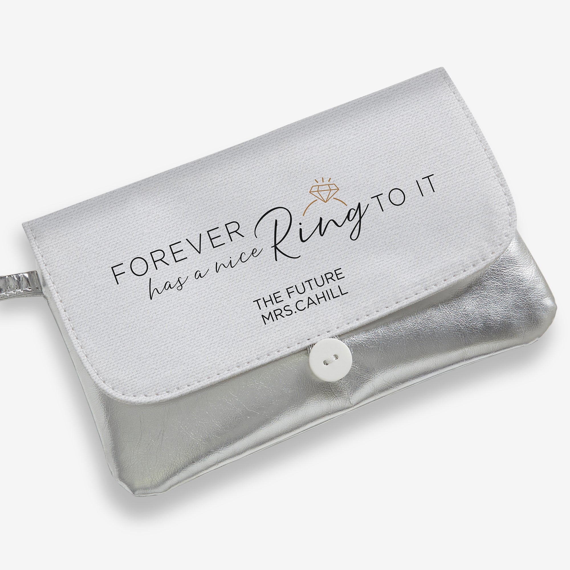 Perfect for touch-ups or to carry along her precious belongings, our We're Engaged Personalized Wristlet will be her favorite new accessory!