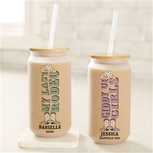 Celebrate with the Western Wedding Personalized 16 oz. Iced Coffee Tumbler . Perfect for the wife of the party and her party crew with a name on each so they know whose is whose.