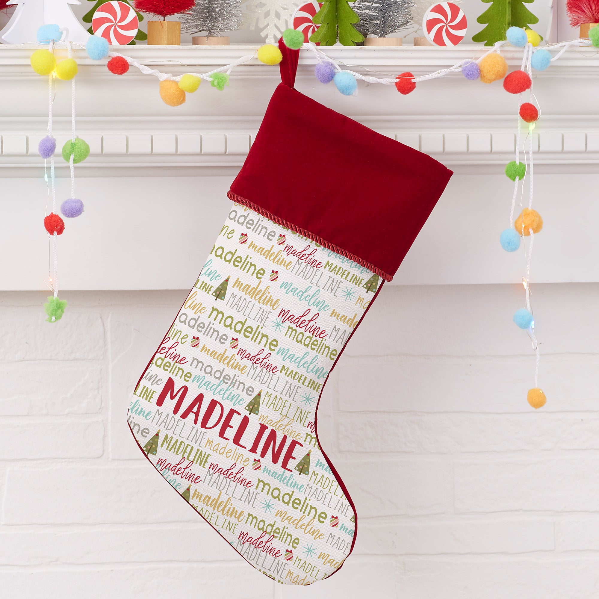 Product Information 24584-B - Whimsical Winter Personalized Burgundy Christmas Stocking