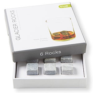 Crafted using top quality soapstone, our 6pc Set Glacier Rocks Ice Cubes are a great way to cool your favorite drinks! Unlike ice cubes, they gently cool your drink without diluting them. Made from "soft" stone, these rocks won't scratch glassware. They are also inert so they won't affect the flavor of any drink.