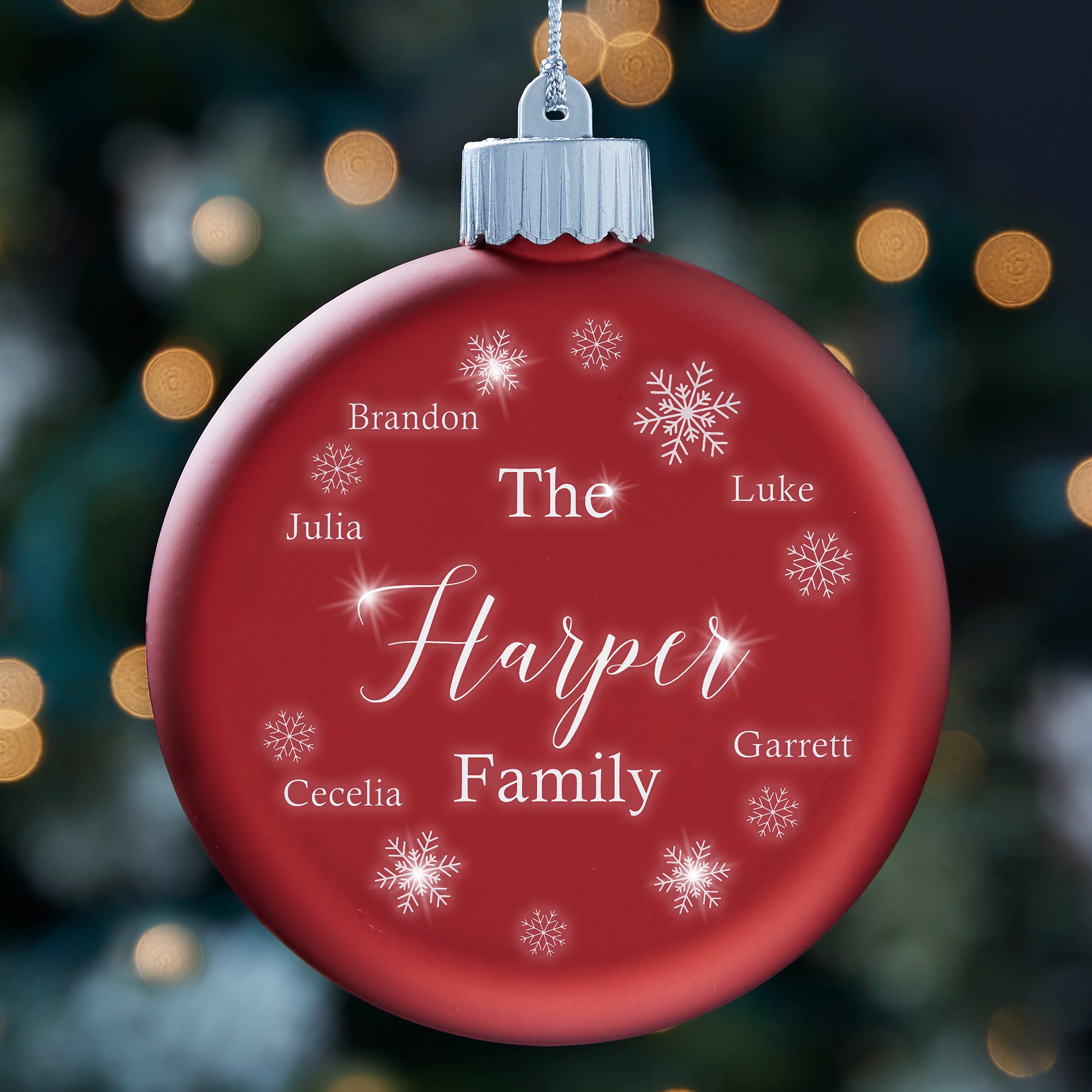 - Skillfully laser engraved with their first names and last name within the snowflake design