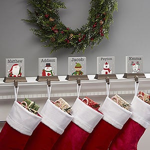 Festively decorate your fireplace mantel year after year with our Wintry Cheer Personalized Stocking Holder. Each stocking holder is heavy enough to support the most abundantly-filled stockings without nails or screws that could damage your mantel.