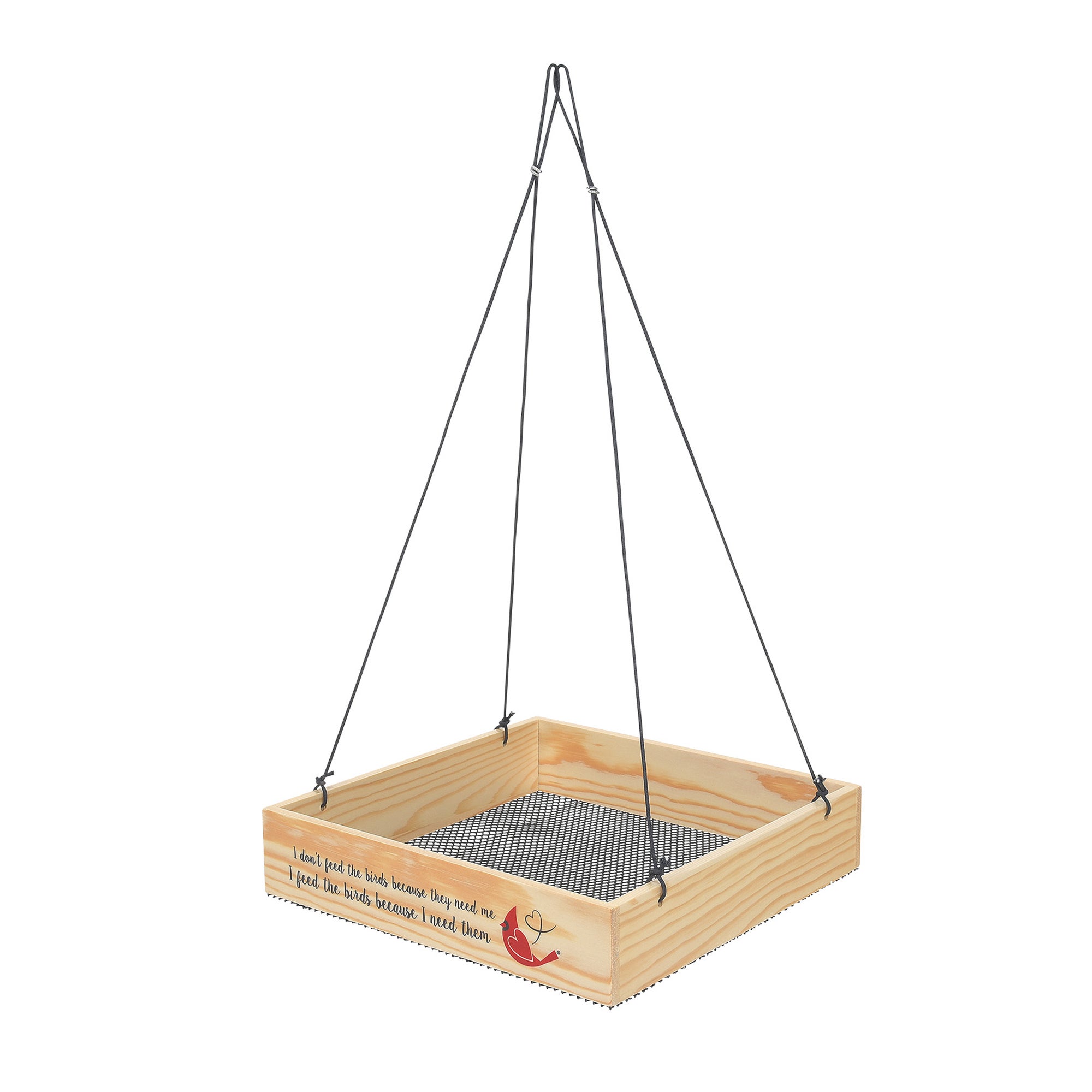 - Quote on feeder reads: "I don't feed the birds because they need me, I feed the birds because I need them"