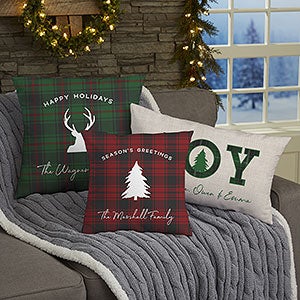 Add a rustic charm to your holiday decor with our Christmas Plaid Personalized Throw Pillow. The festive plaid design will add a pop of holiday cheer to any sofa, chair or foyer.