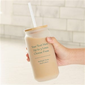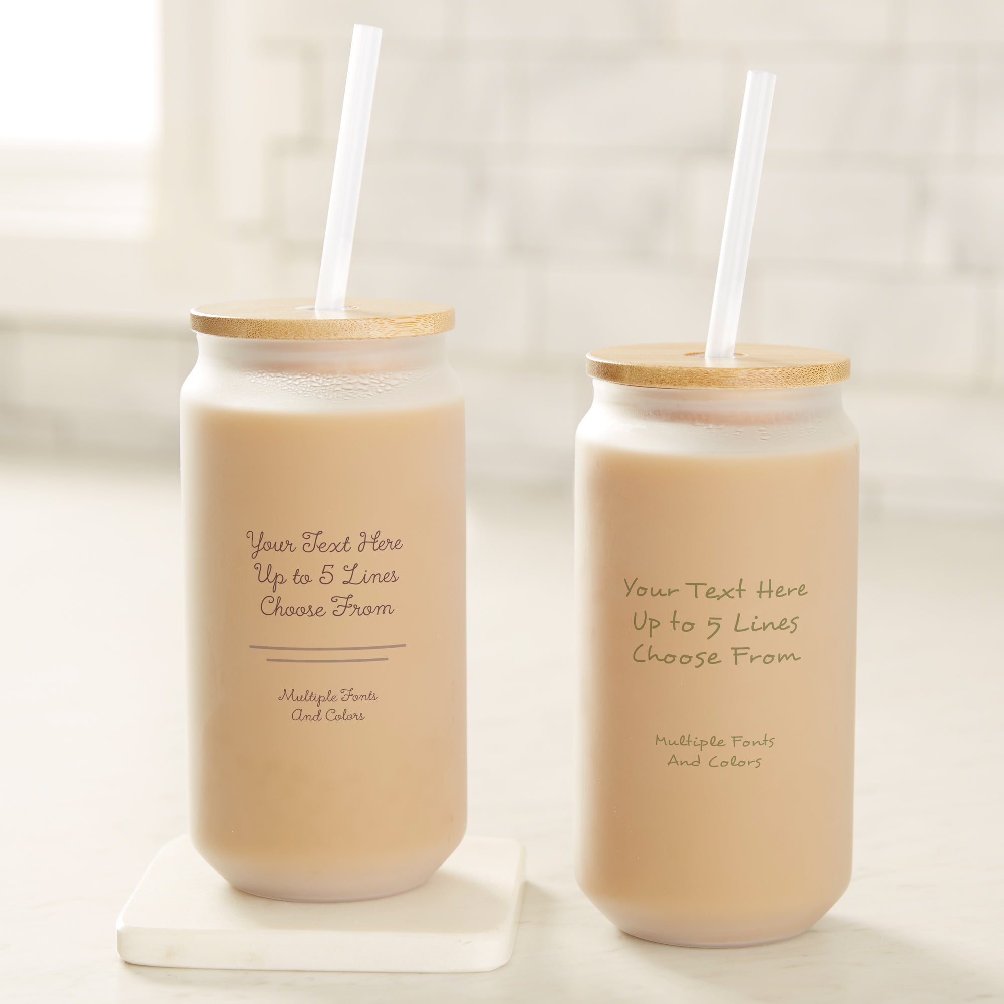 Sip in style with our Write Your Own Personalized Frosted Iced Coffee Tumbler. A bamboo lid and straw add sustainable style and functionality, making this a perfect choice for travel drinkware and reducing spills in any environment! The bamboo lid fits perfectly on the glass and has a hole specifically built for the straw.