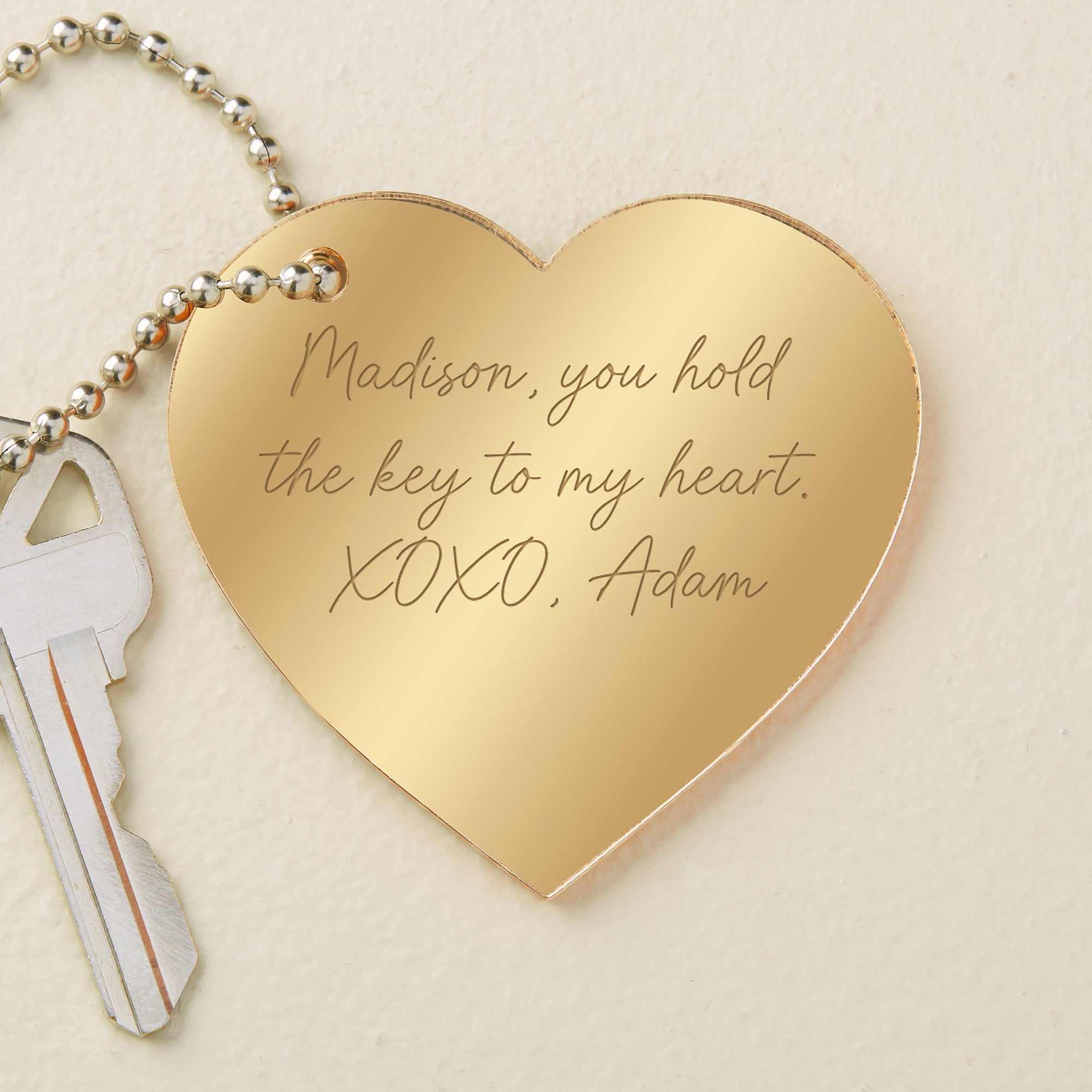 Whether you're together or far apart, their heart will always be with you with the Write Your Own Personalized Heart Shape Acrylic Keychain.