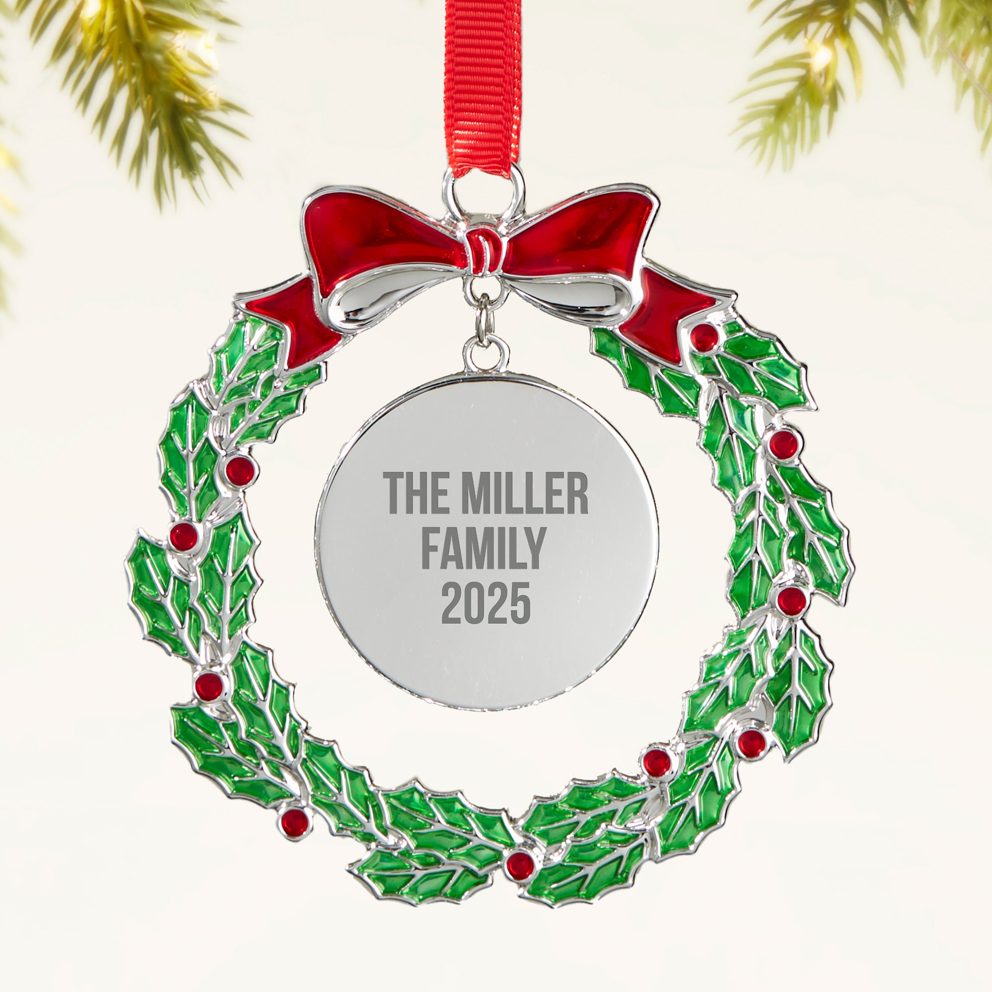Enjoy this beautiful Write Your Own Personalized Metal Wreath Ornament for years to come. The ornament makes the perfect keepsake to hang on the tree year after year.