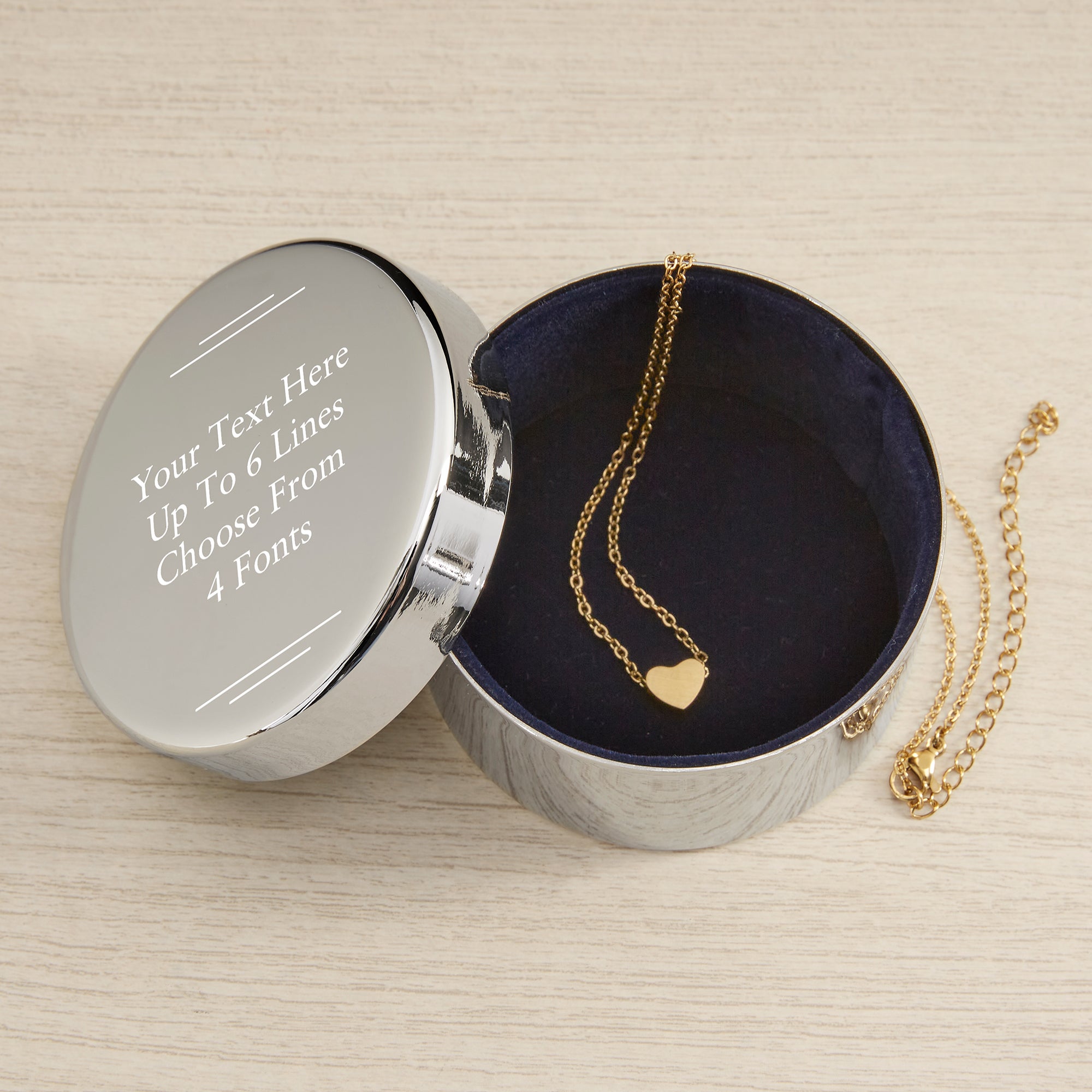 Write Your Own Personalized Round Jewelry Box Gift Set with Heart Necklace