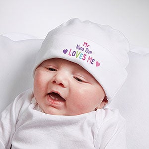 Let your little one show off who loves them most while they wear our Somebody Loves Me Personalized Baby Hat.