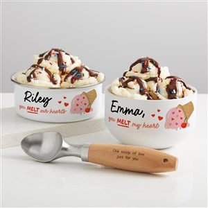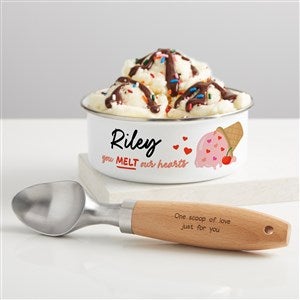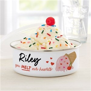 Serve up smiles with the adorable You Melt My Heart Personalized Kids Enamel Bowl with Lid designed to make every scoop extra sweet. Featuring the playful phrase "you melt my heart" alongside a charming ice cream illustration, this bowl is the perfect blend of fun and heartfelt sentiment. The personalized name makes it a thoughtful gift for birthdays, Valentine’s Day, anniversaries, or just because.