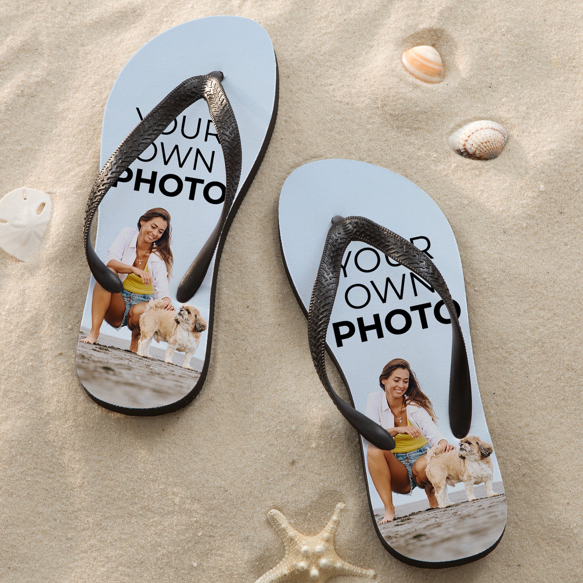 Step out in style this summer with Your Own Photo Personalized Adult Flip Flops. The perfect accessory for beach and pool days!