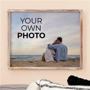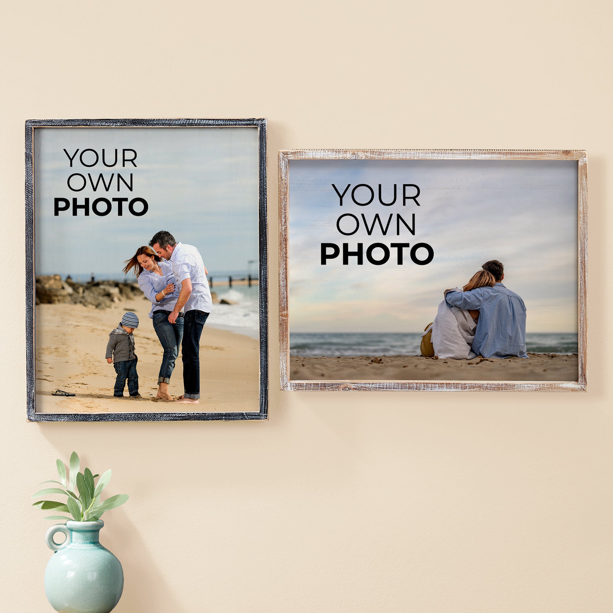 • Upload any favorite photo to be printed on the center wood surrounded by a whitwewashed wood frame