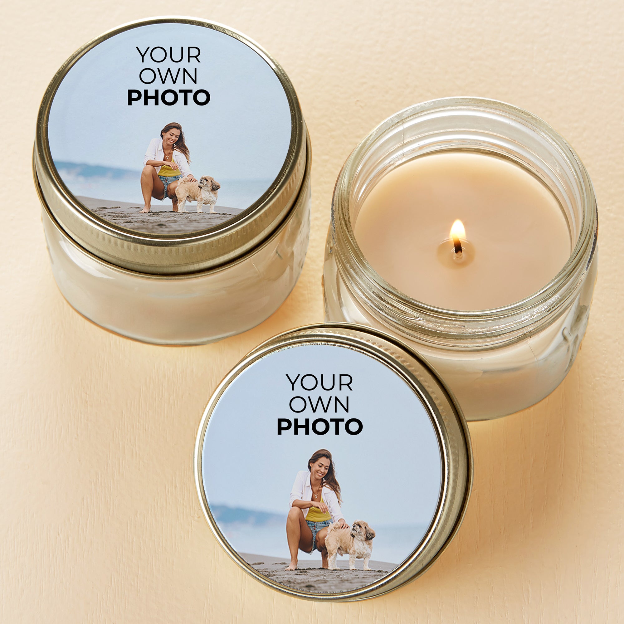 Give your guests the romance and beauty of flickering candle light with our Your Own Photo Personalized Mason Jar Candle Favors. These mini vanilla-scented candles make the perfect sized favor for any occasion.