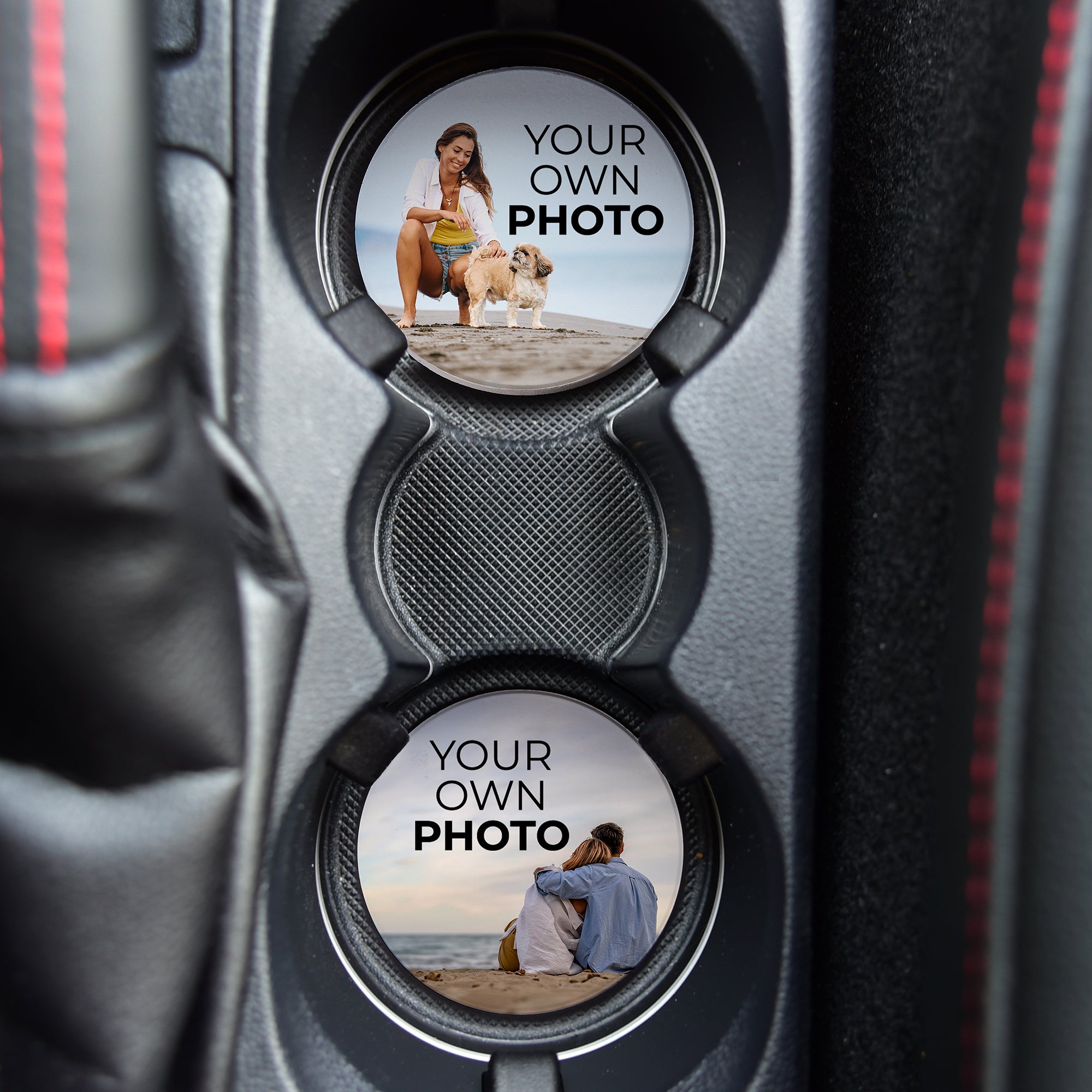 Protect your cup holders against condensation and spills with Your Own Photo Personalized Photo Car Coaster Set of 2.